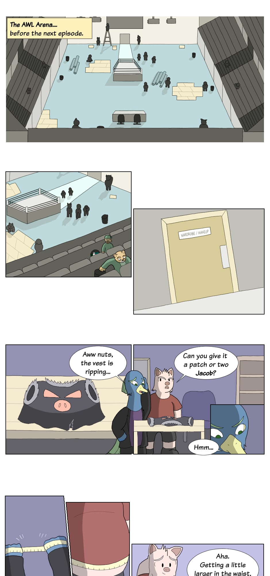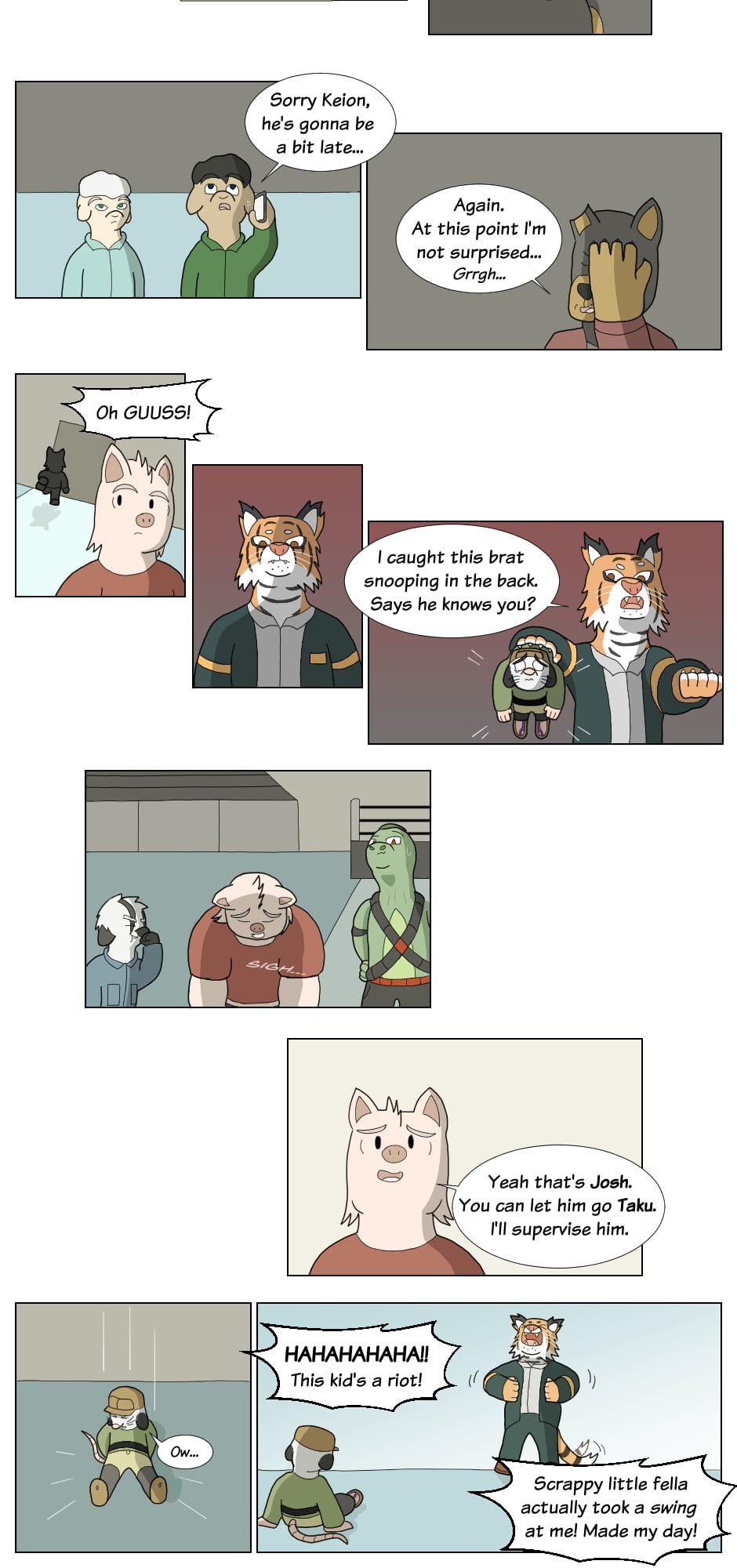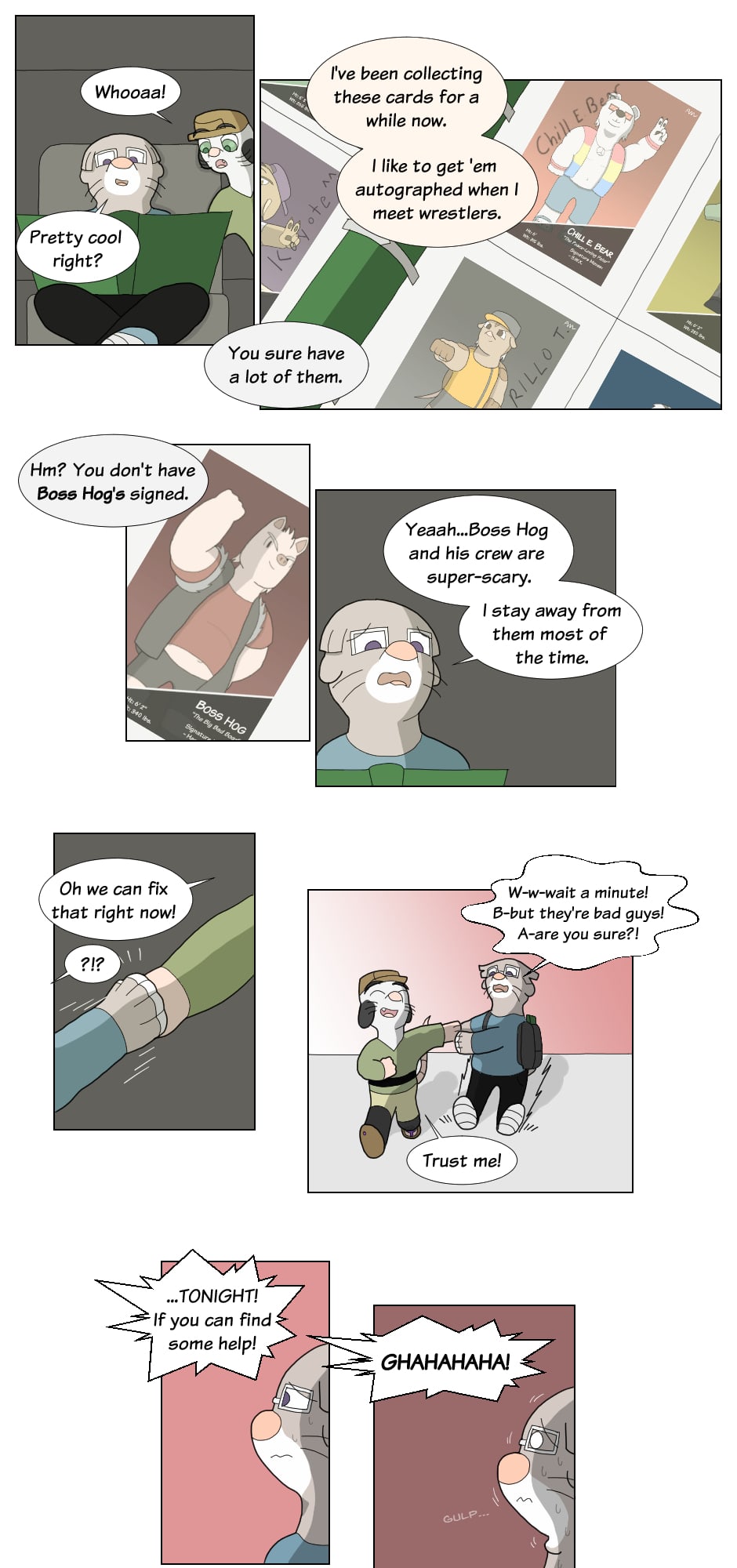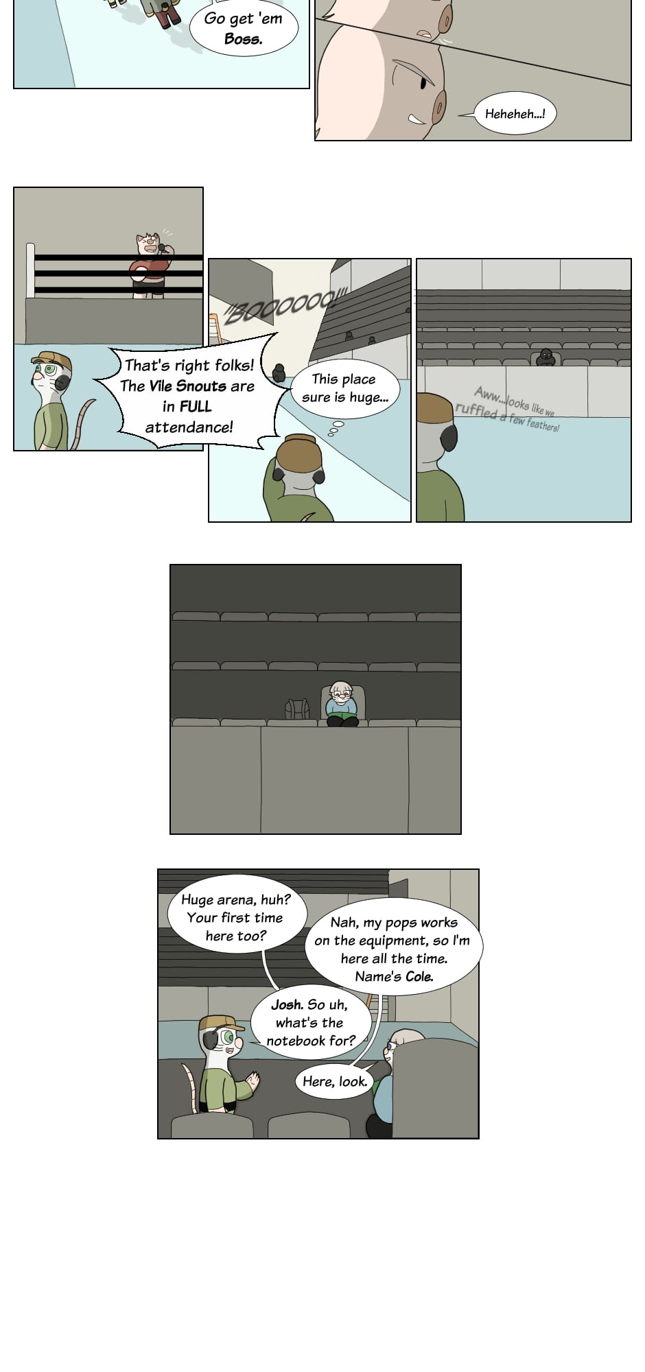 But outside the ring though...name's Gus Orikson; a completely opposite pig from earlier. Eh, guess you can say I kinda go with the flow. You'll see me hanging around these guys most of the time. Heh heh, they're always up to something.