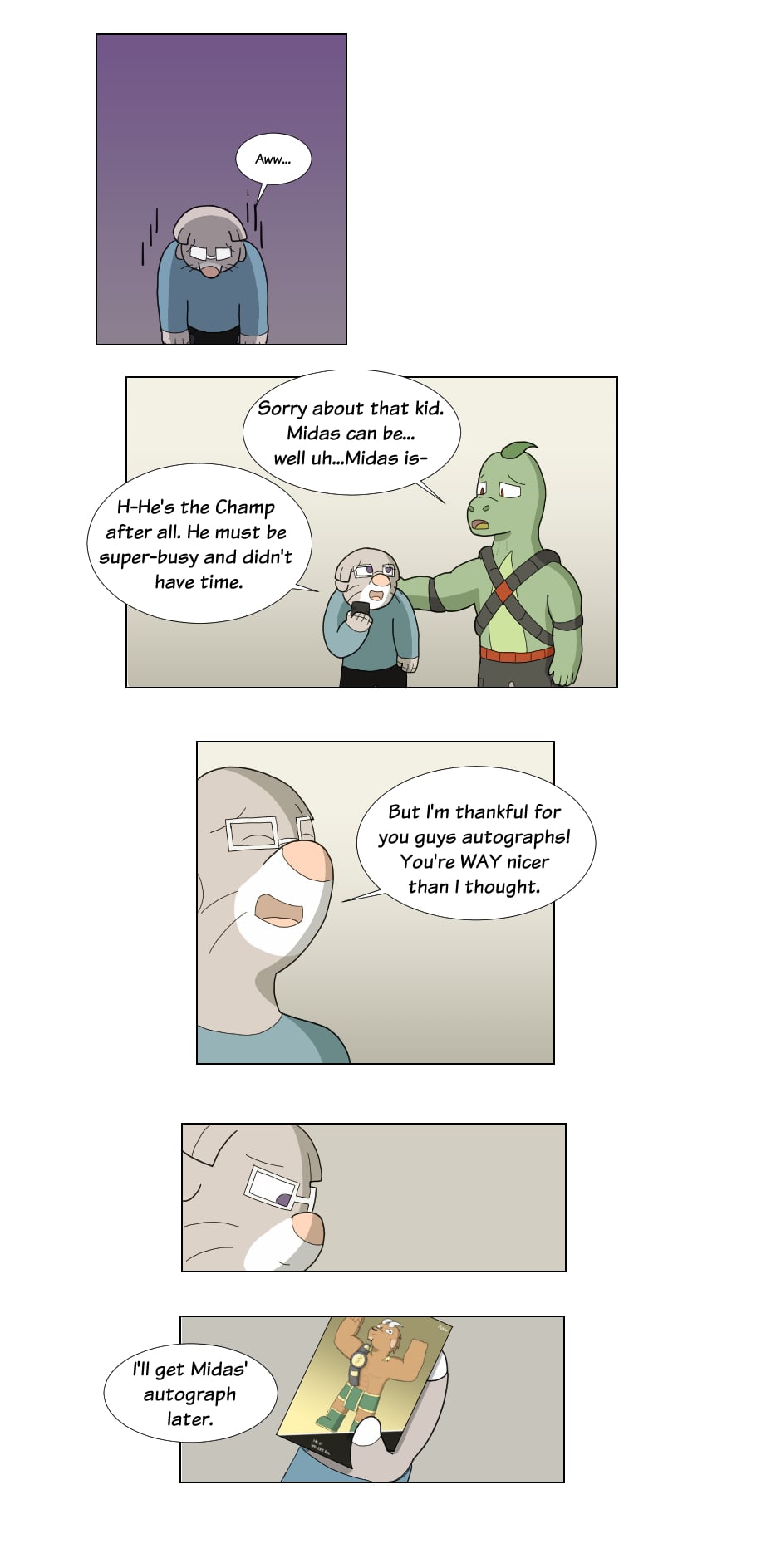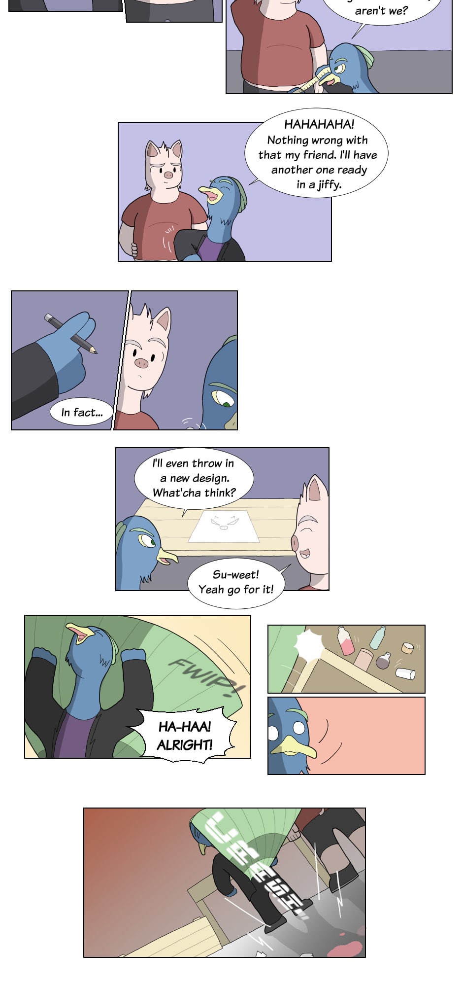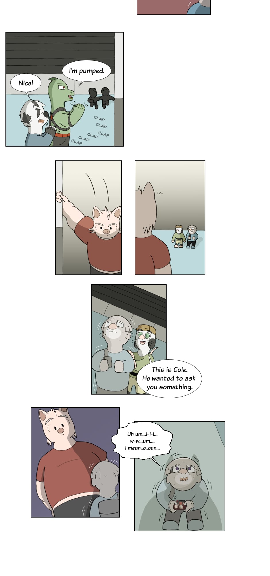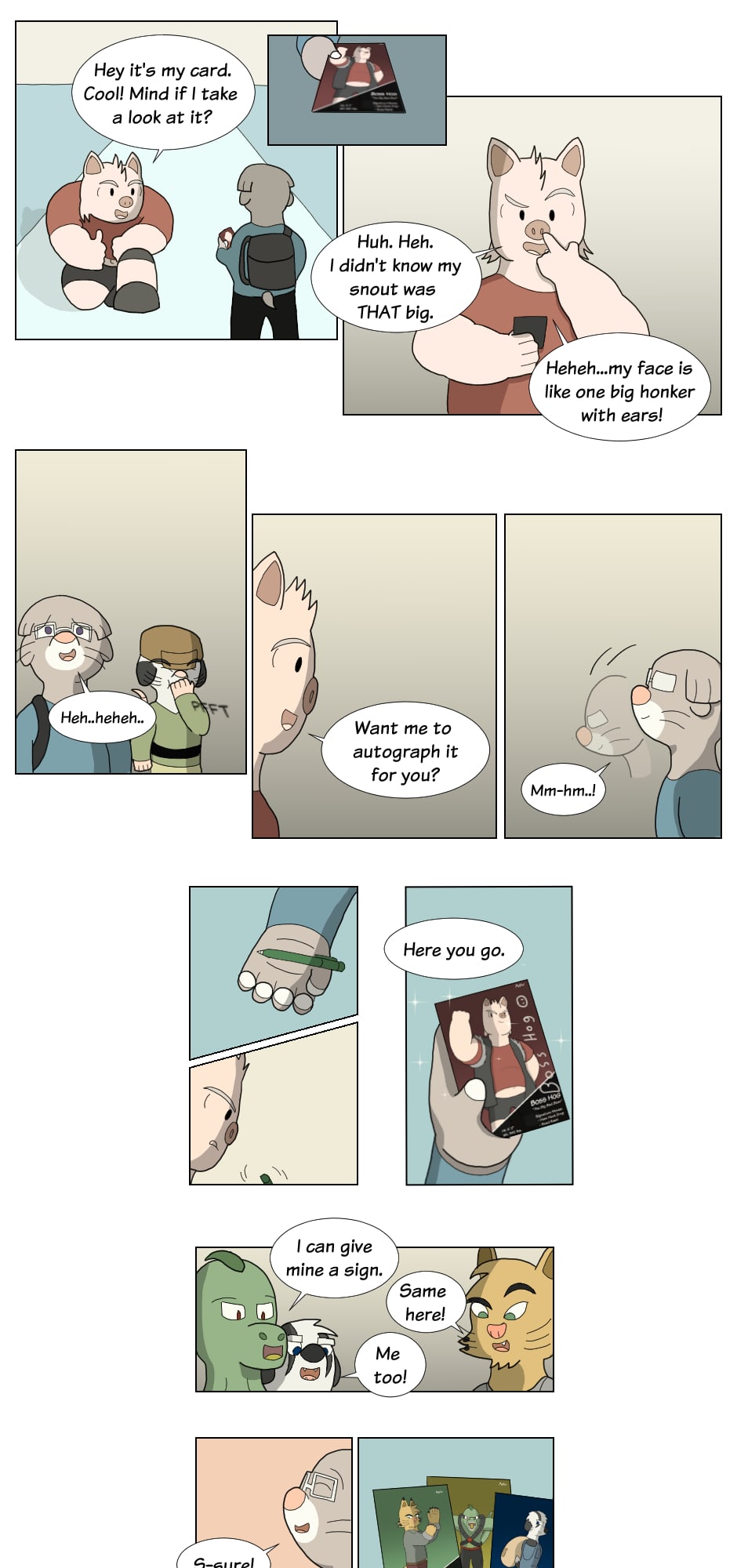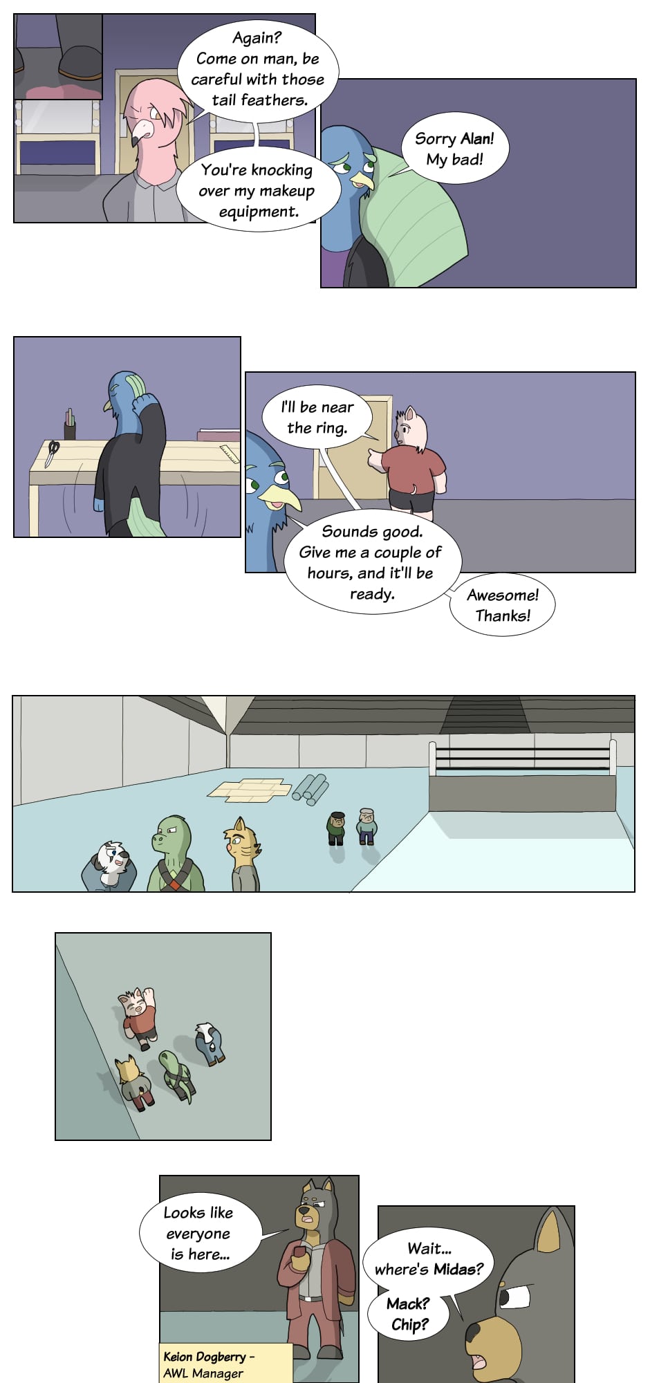 But outside the ring though...name's Gus Orikson; a completely opposite pig from earlier. Eh, guess you can say I kinda go with the flow. You'll see me hanging around these guys most of the time. Heh heh, they're always up to something.