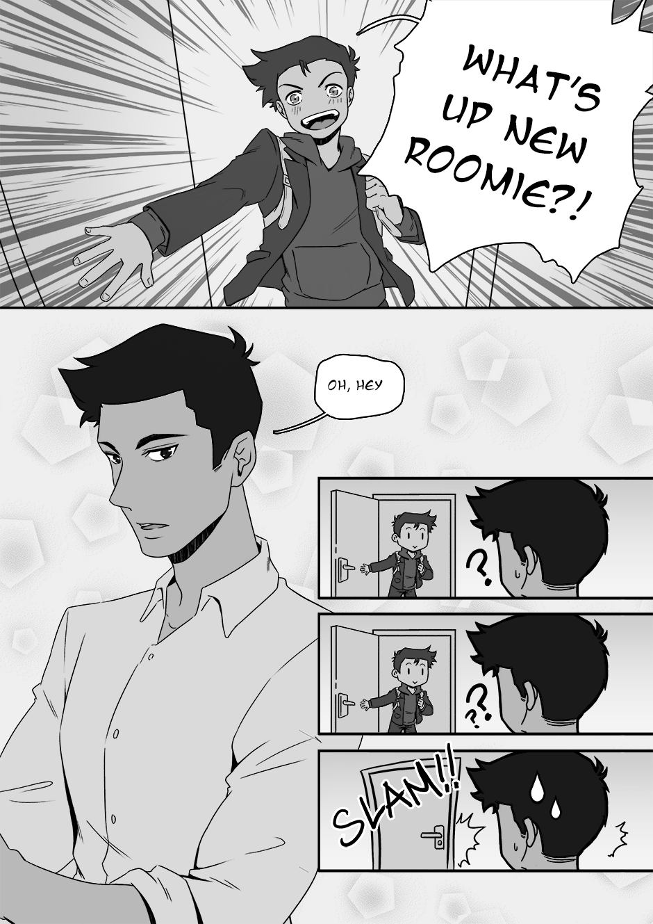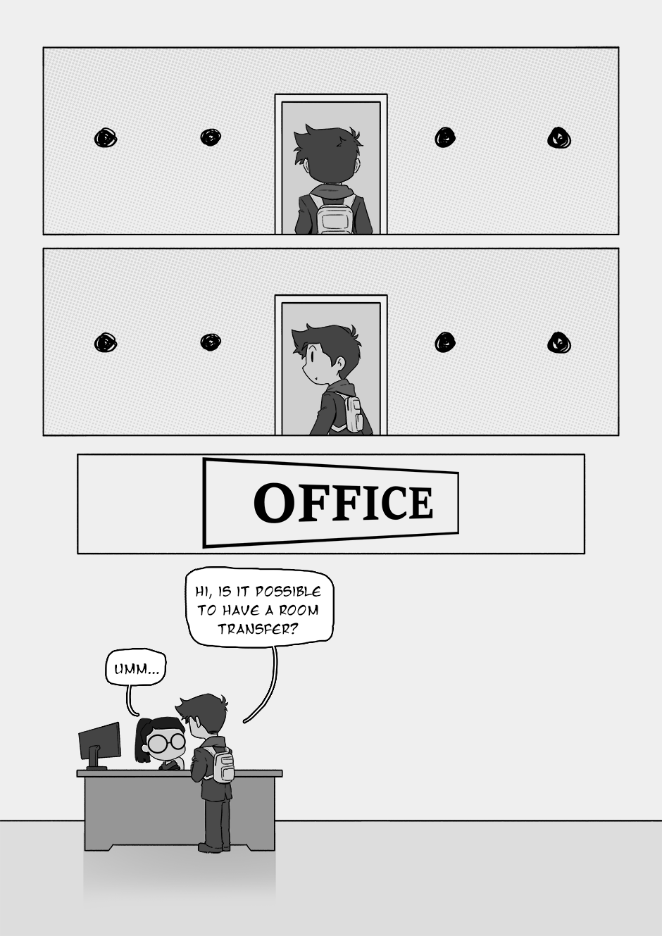 Awww come on, dude. Why'd you wanna change rooms? It's the best start of a rom com!