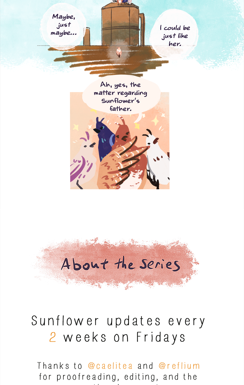 Hope somebirdie is holding Sunflower's tail feathers...a big reveal is coming. Place your bets now on Sunflower's father.
