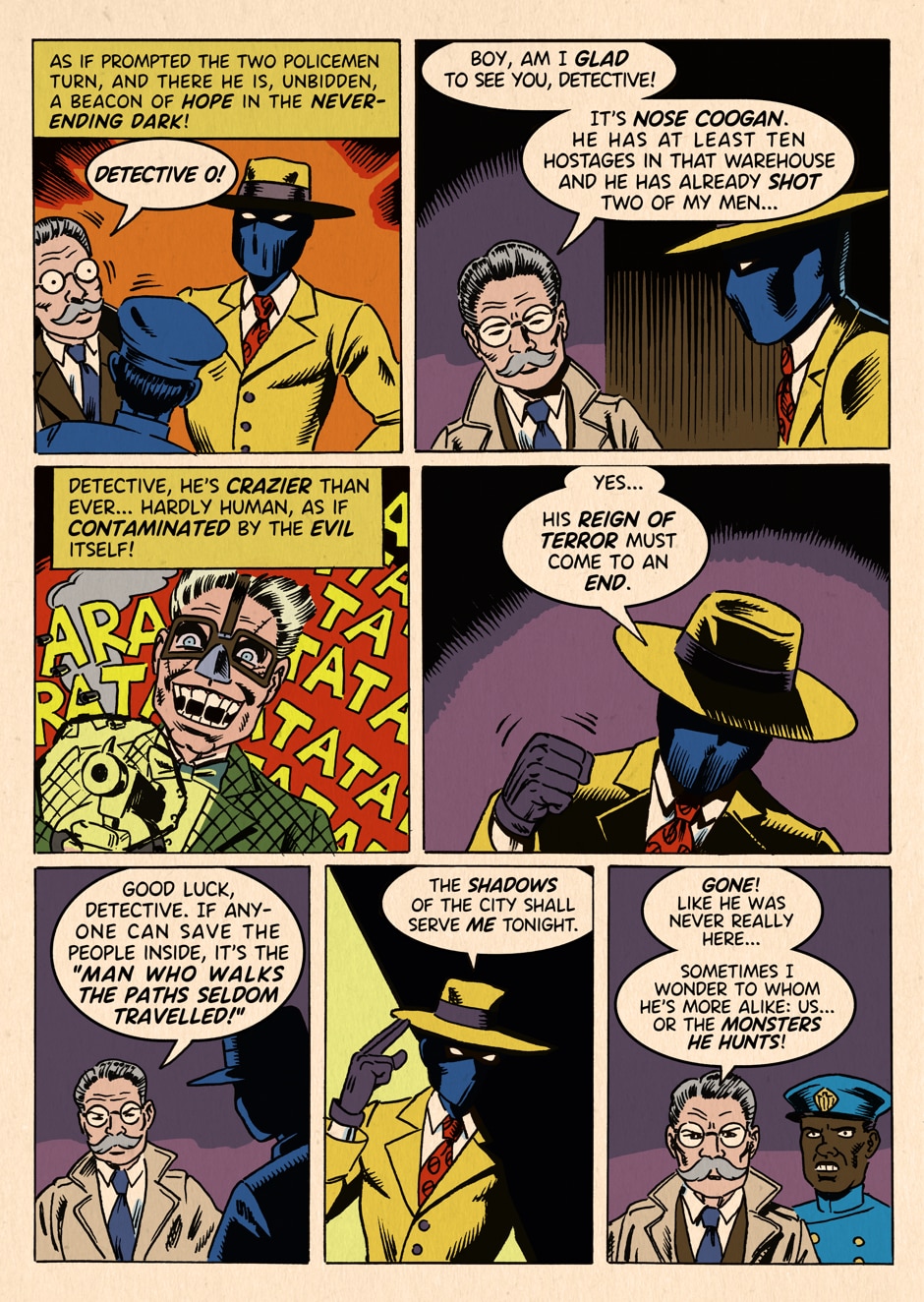 Dedicated to the legends: Roy Crane, Bill Everett, Bill Finger, Gardner Fox, Fletcher Hanks, Robert Kanigher, Jack Kirby, Joe Kubert, Sheldon Moldoff and Harry G. Peter (and countless other great comic creators of the past).