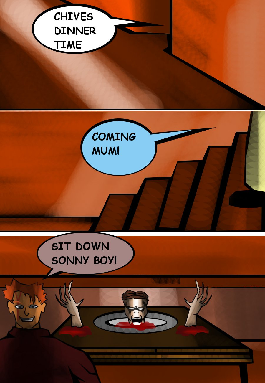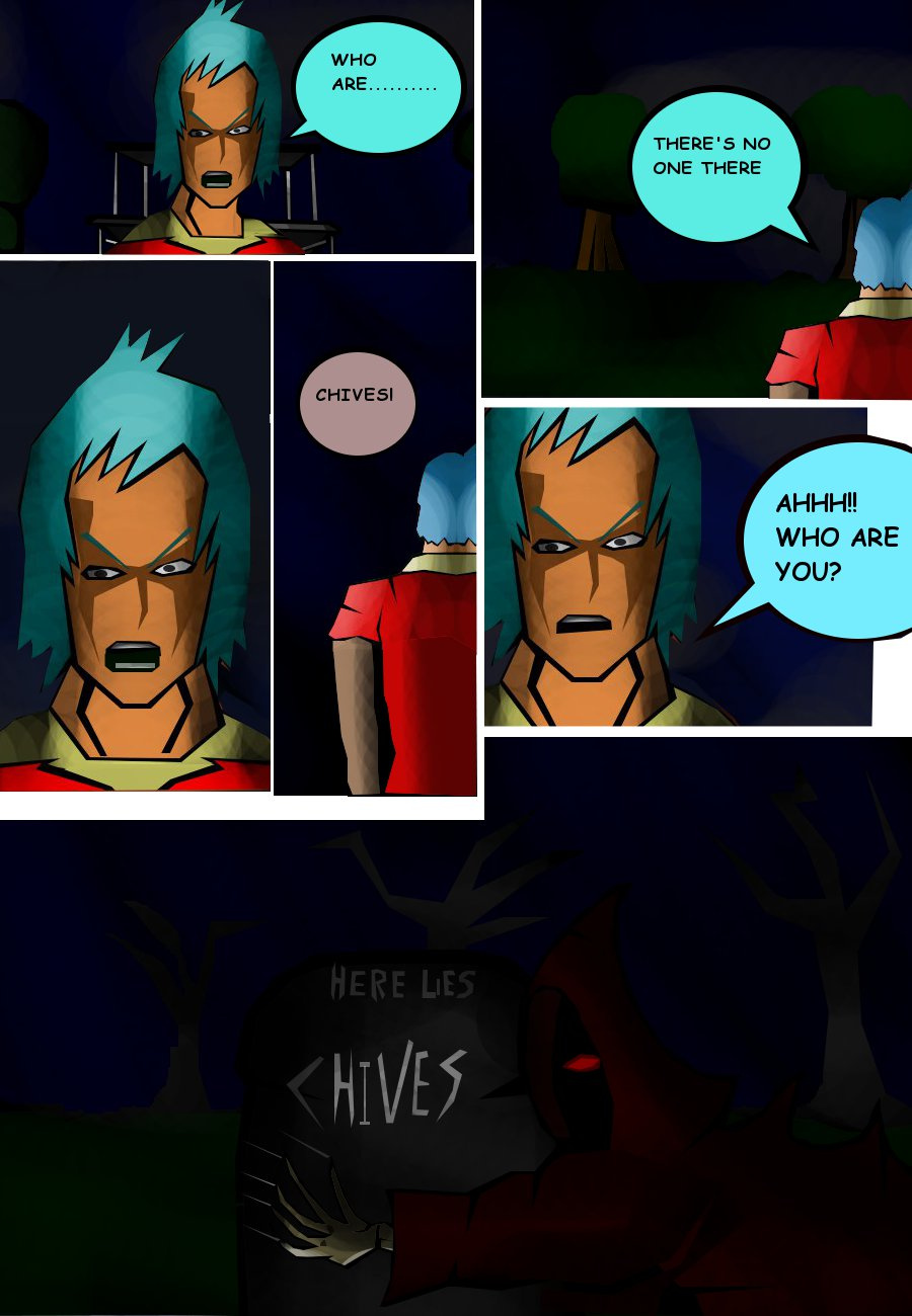 Chives is trapped in an illusion seeing things that aren't really there haunted by the cloaked figure