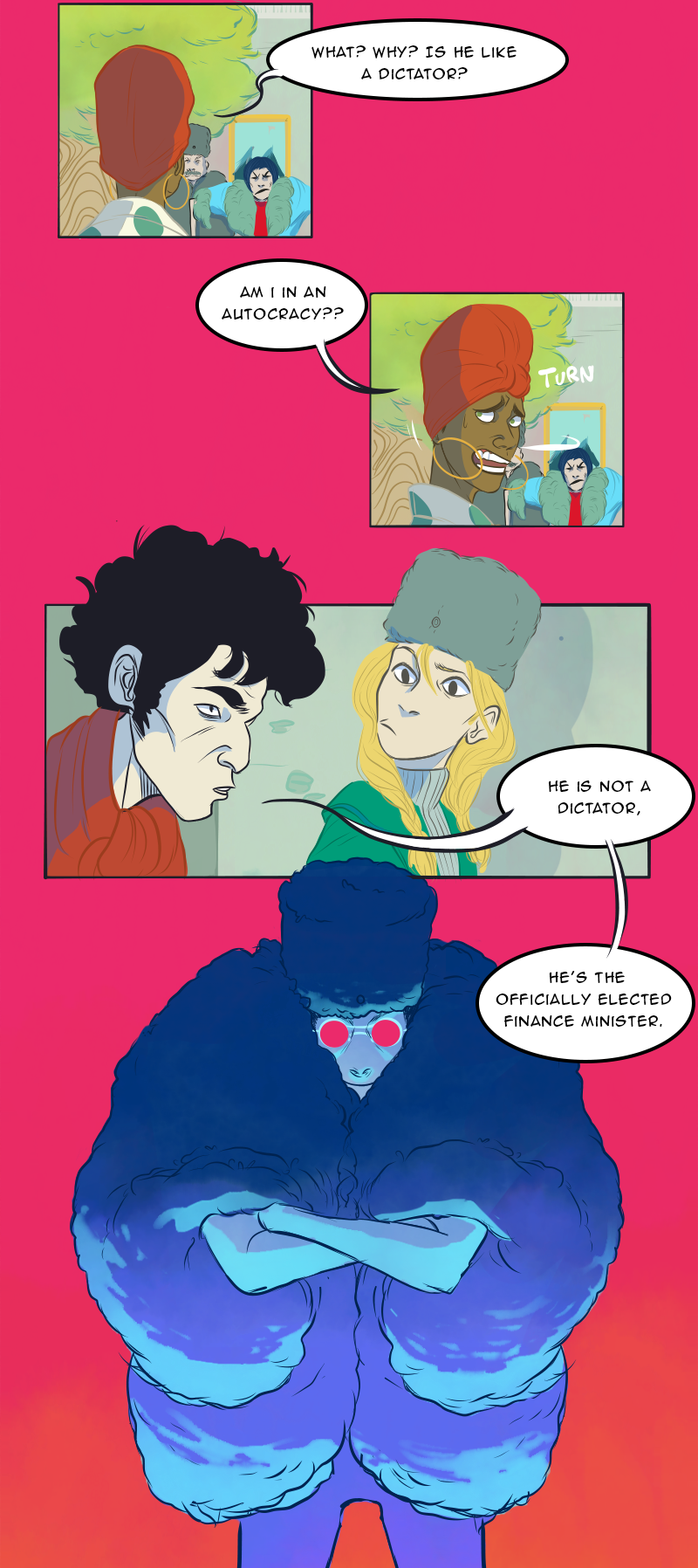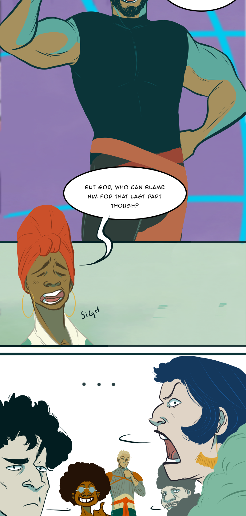 I love when there’s such a big height difference that some of the characters are by necessity barely peeking over the bottom of the panel it never gets old