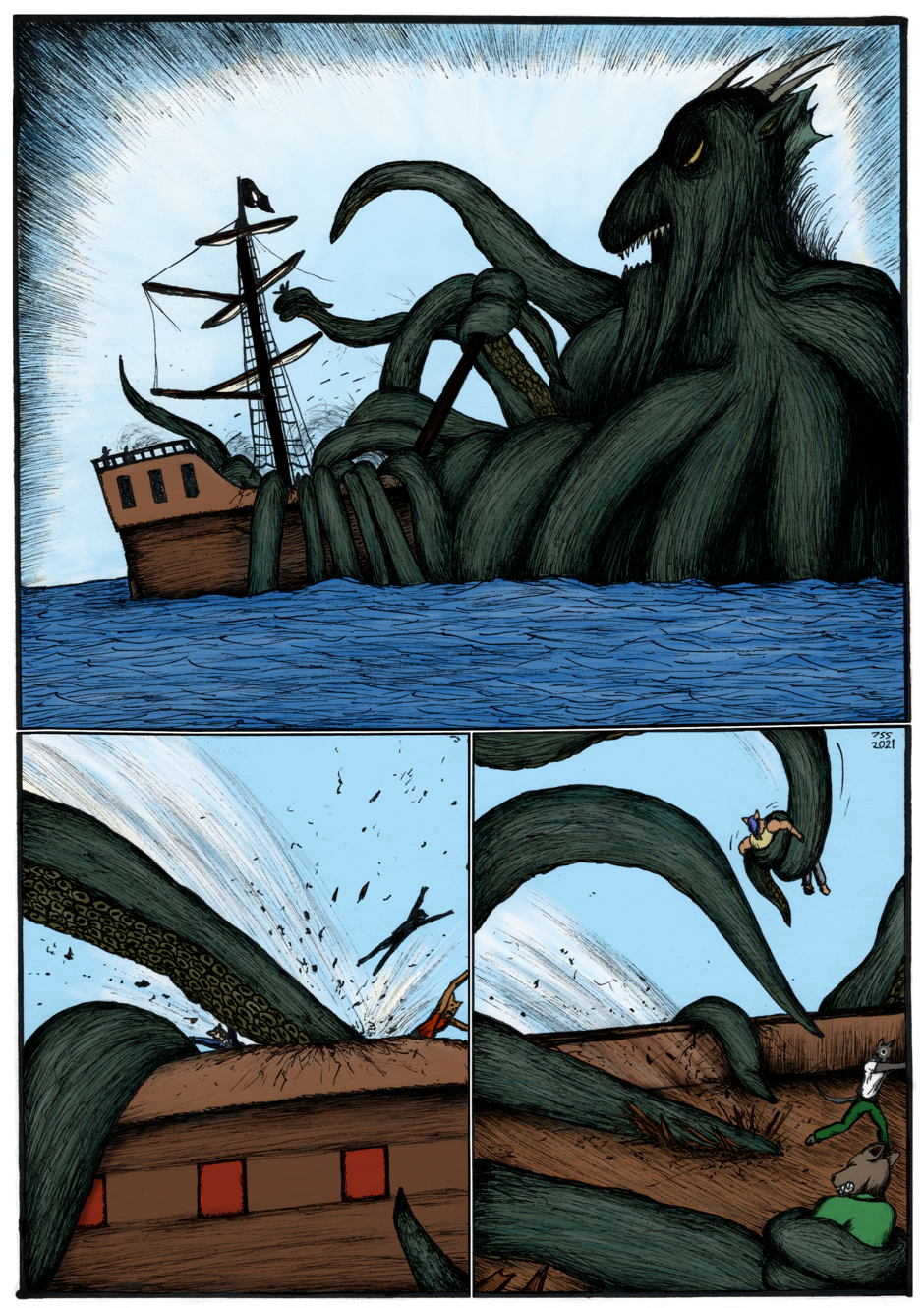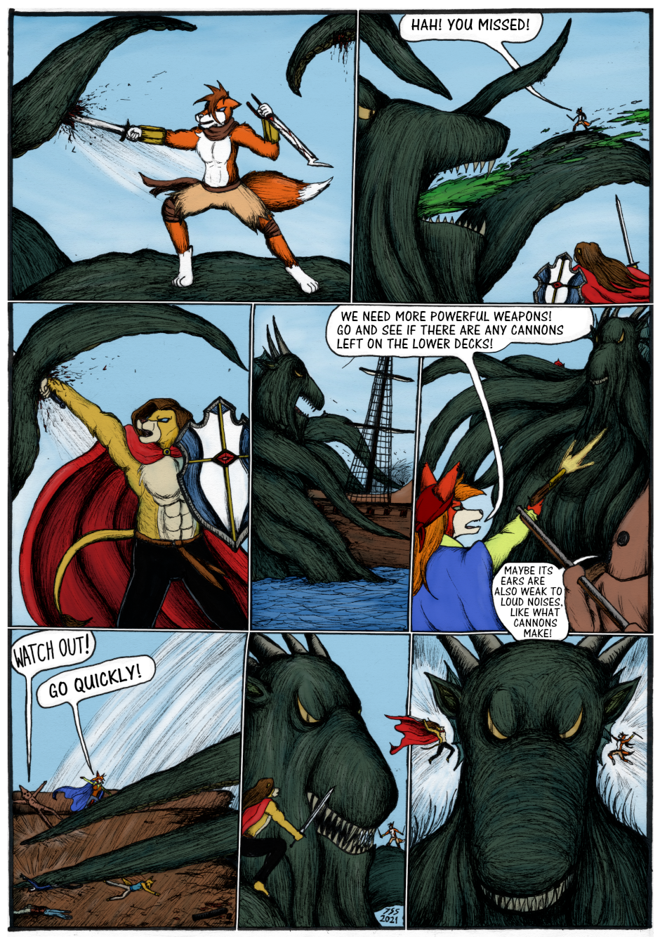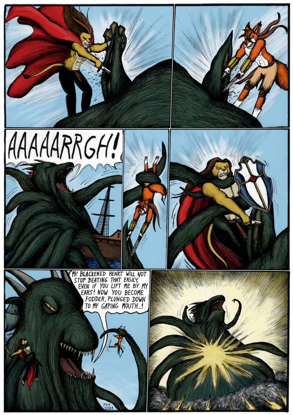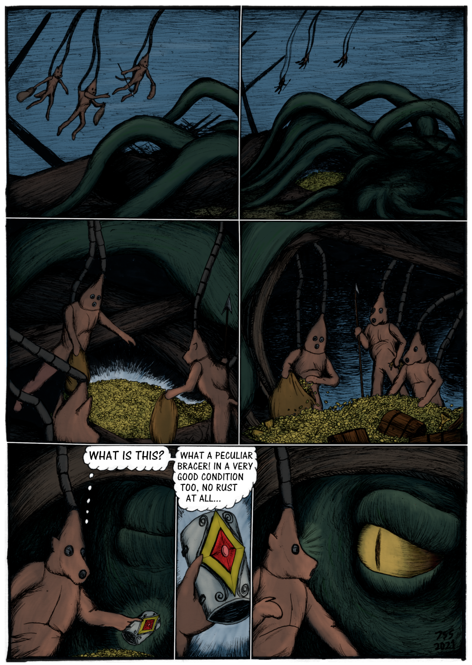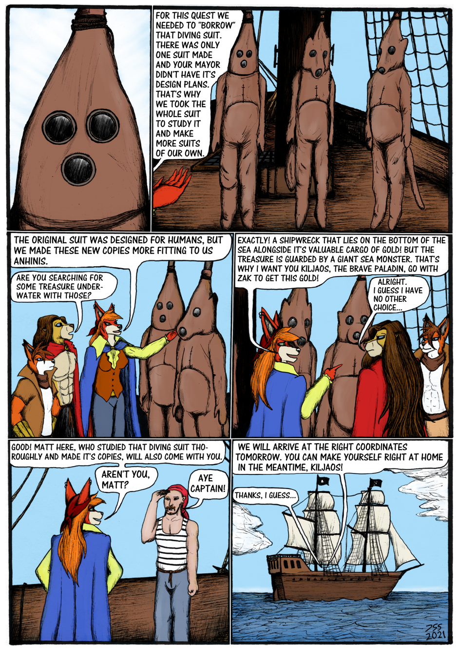 Continuation to the previous story, "Gunilla". The lion paladin of wind Sir Kiljaos ends up on a ship ruled by the fox pirates he previously met in the story "Fairy of Tasku". Together they go find a sunken treasure, but end up facing an ancient threat...
