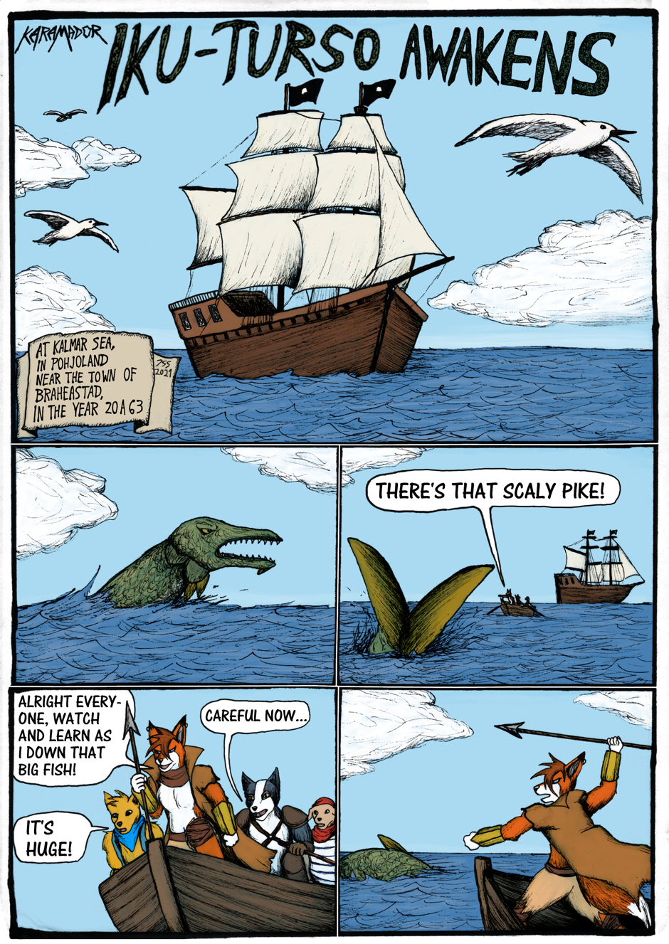 Like in previous Karamador stories, this story also includes folk lore and legends from different parts of Finland and Scandinavia, this time diving into the legend of a mystical beast Iku-Turso from Finnish mythology.
