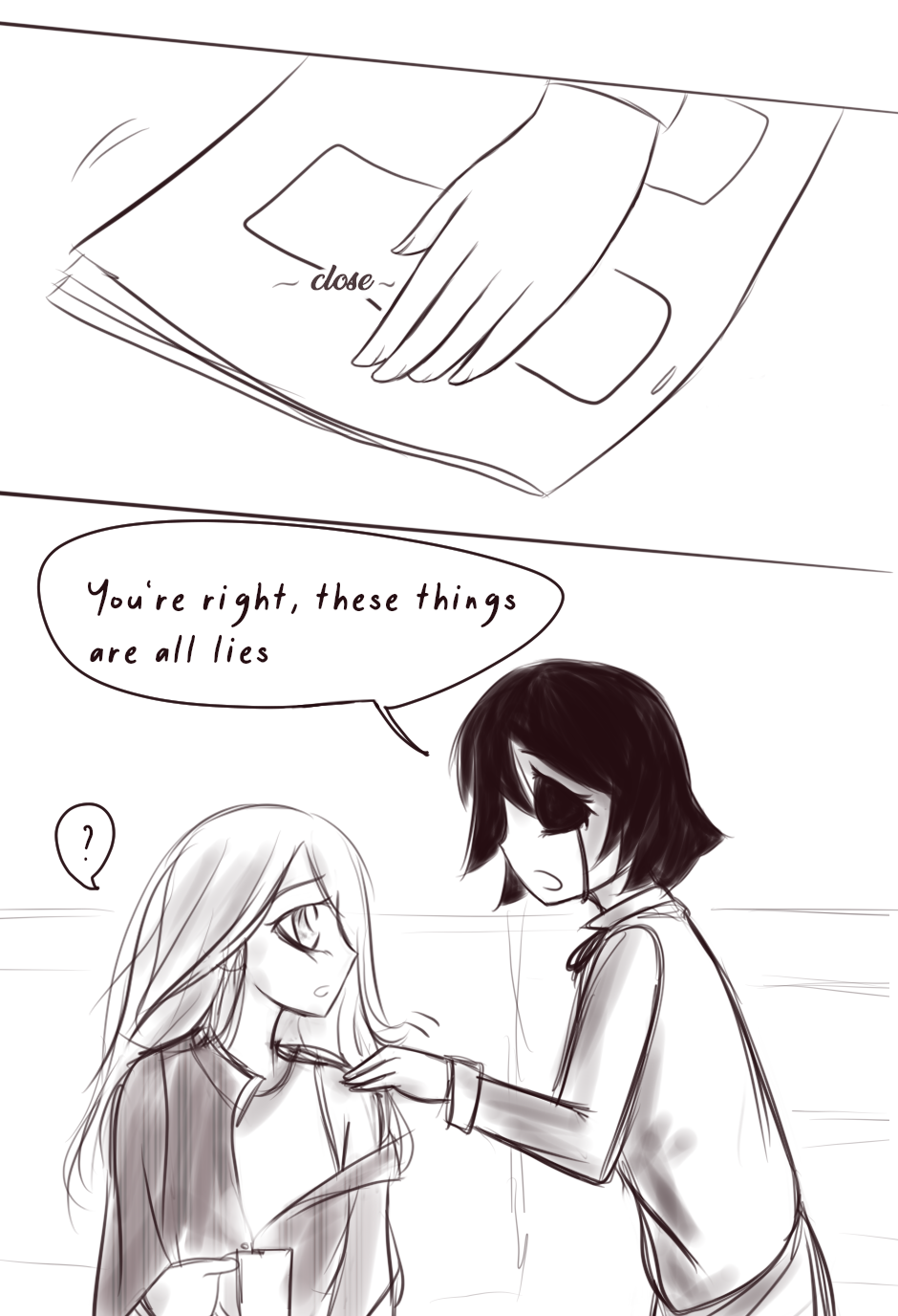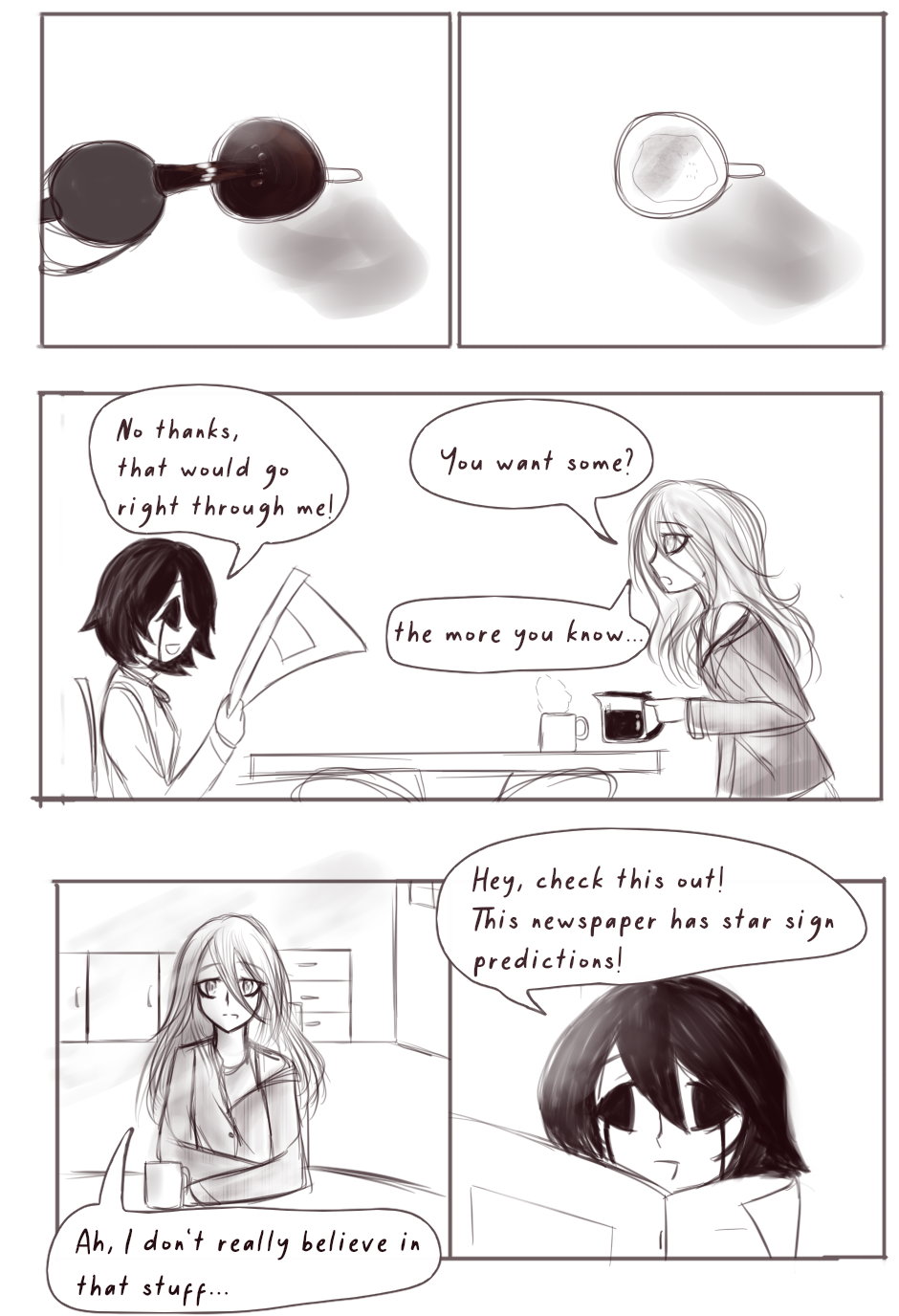 Welcome to the third chapter, sorry there's no side character story this time, I drew a whole skit and was unhappy with it and scrapped it and that wasted a lot of time so I decided to just leave the extra story for next time. On the bright side, I do think my art is getting a tiny bit cleaner with each passing chapter. Anyway, I hope you enjoy this one even tho it's pretty short.