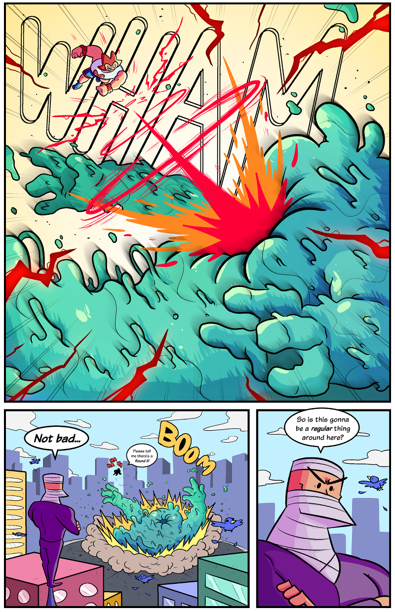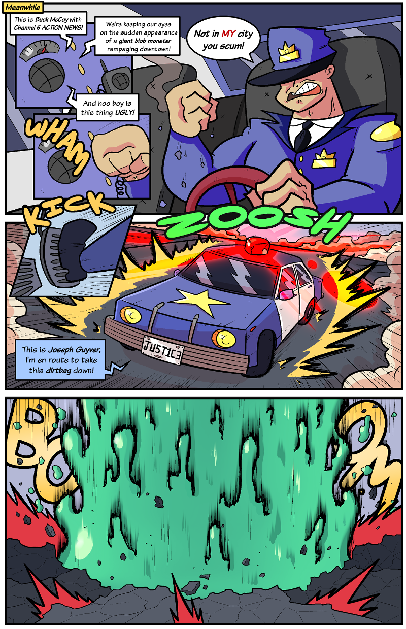 Blobbor's rampages continues downtown, but the things start to heat up once Mr. Muscle hits the scene!
