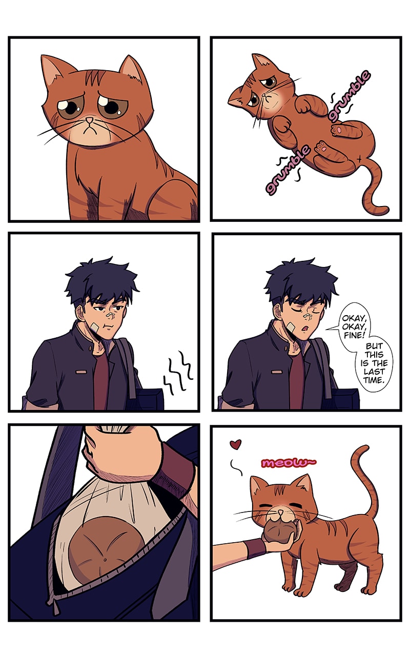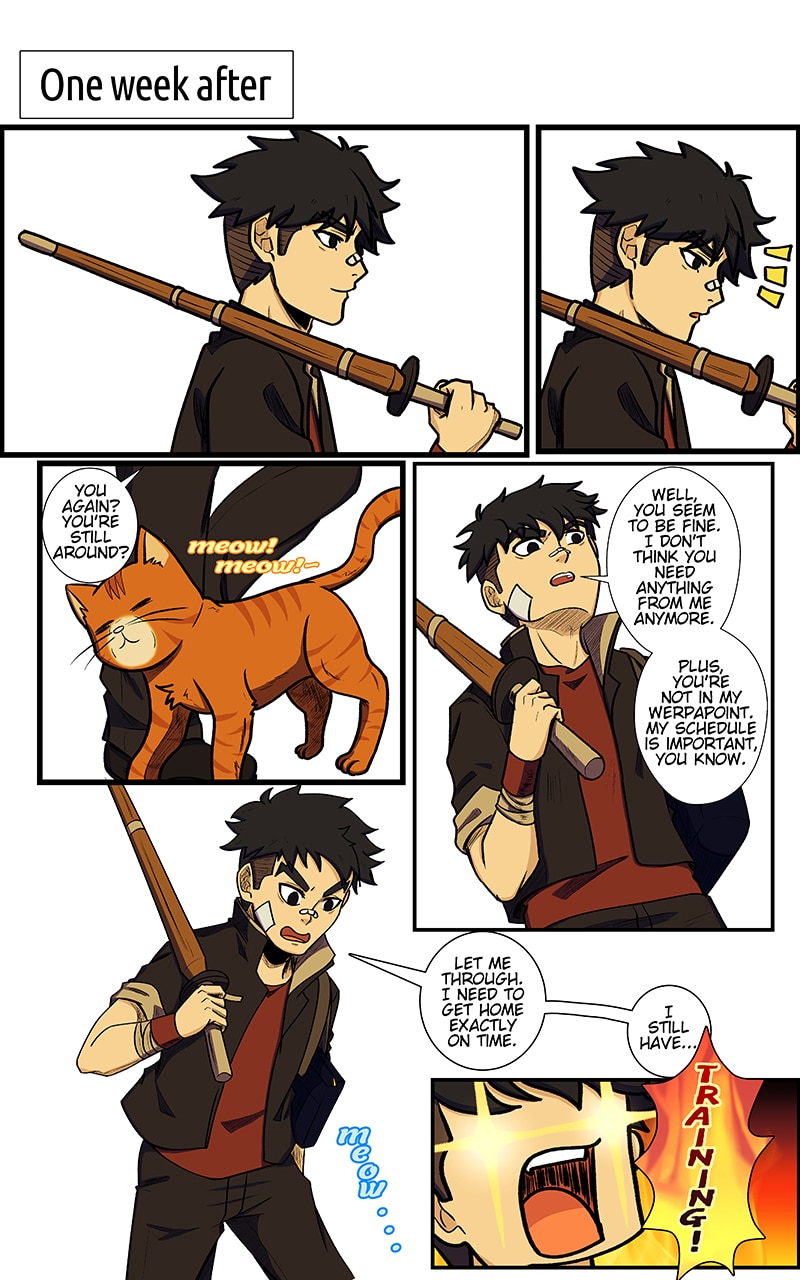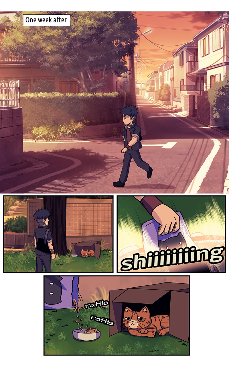 Flashback: Kenjiro befriends a cat on the way home.
