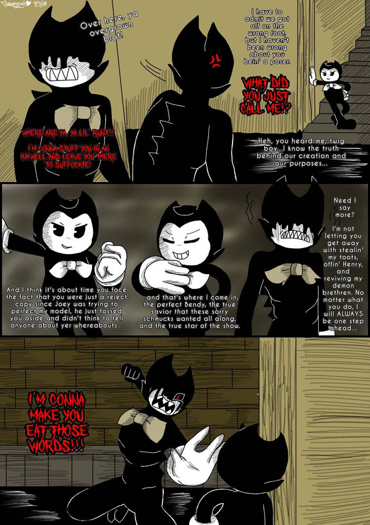Note: This comic is loosely based off of Bendy Chapter 4: Colossal Wonders, along with my own added ideas and storyline, so I ask that you give this series a chance and hope you enjoy it. :)
