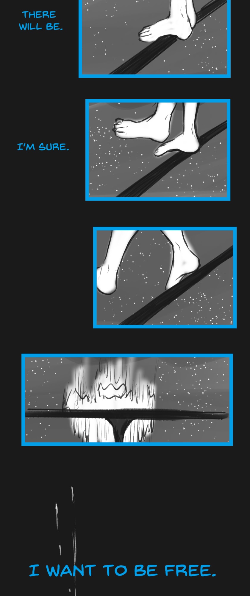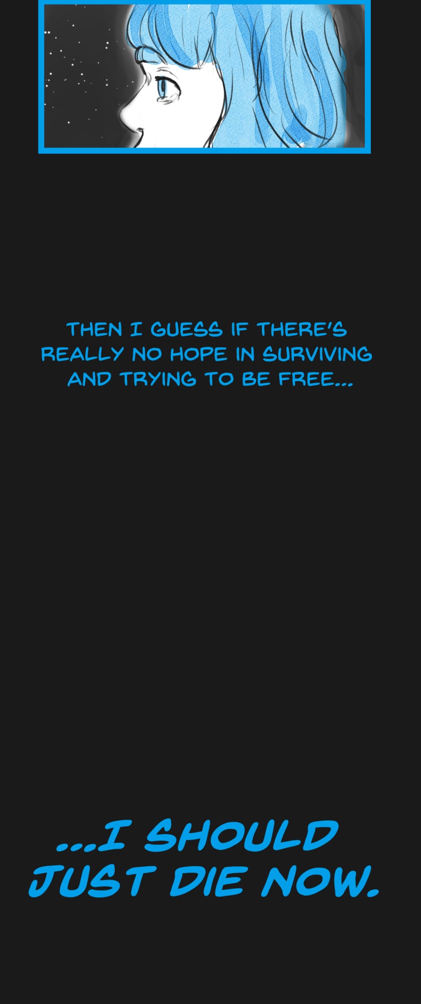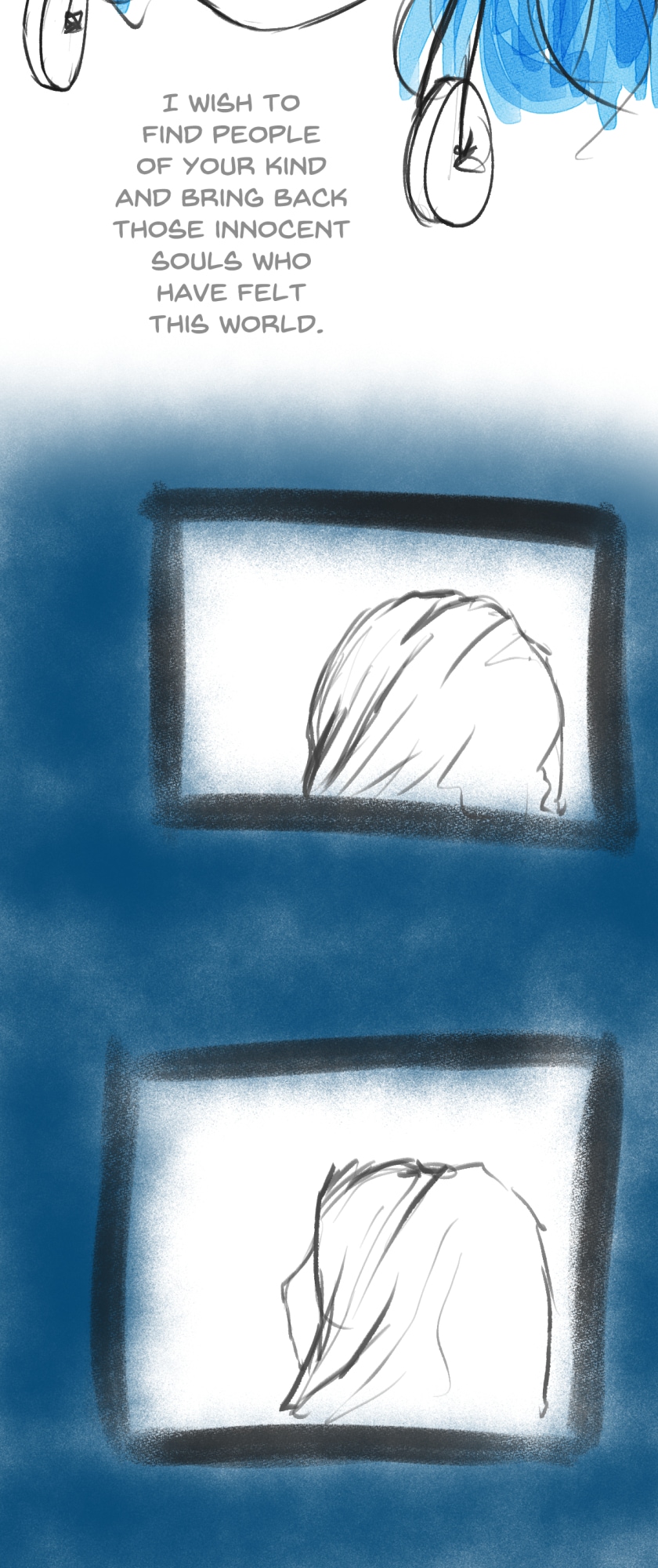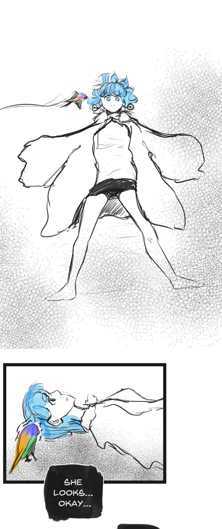 In a state of hopelessness and despair, a blue-haired girl, who was put into involuntary sex work, wants to escape the place she's stuck in. She feels imprisoned, and wishes to be freed. Then, one day, a little bird with the ability to open "frames" - portals from one place to another - fulfils her wish.