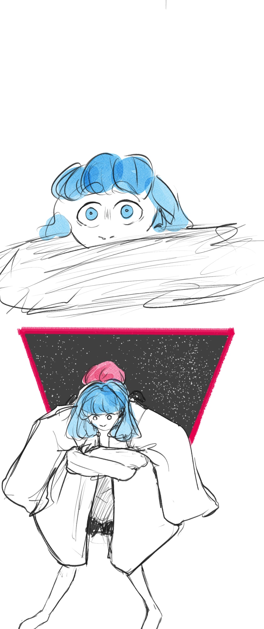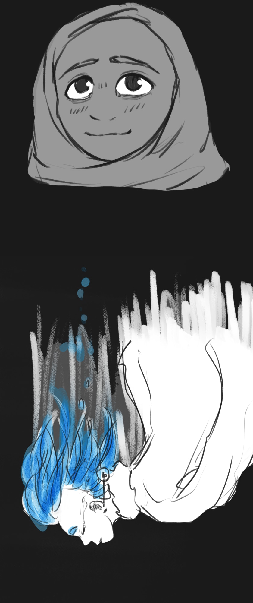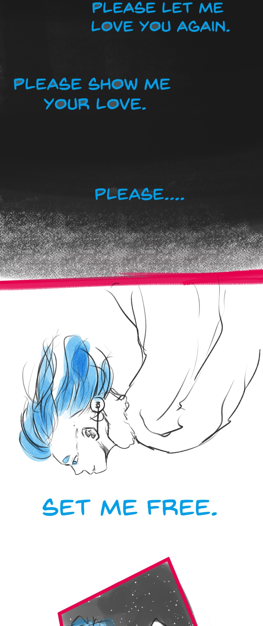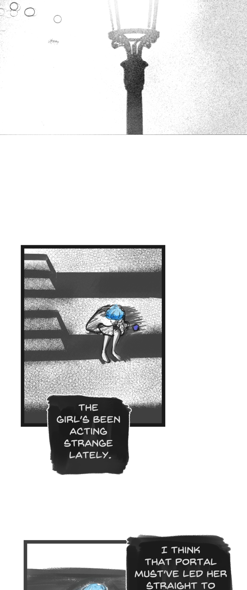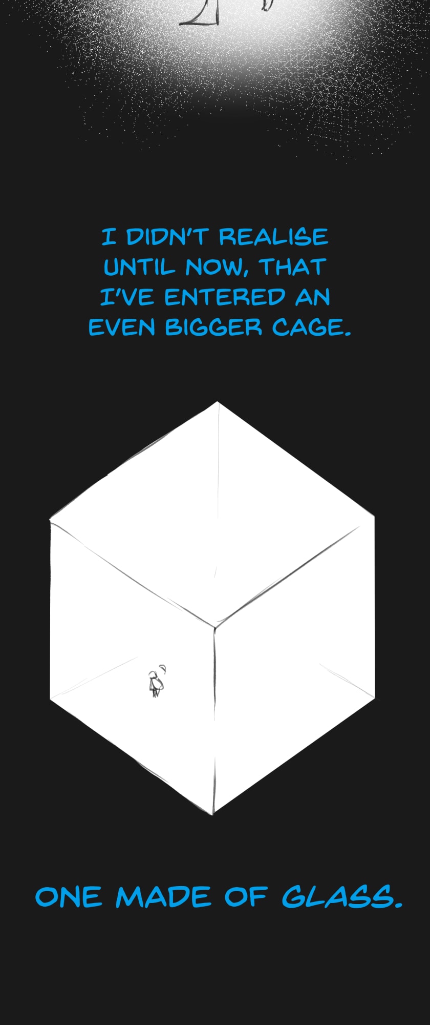 In a state of hopelessness and despair, a blue-haired girl, who was put into involuntary sex work, wants to escape the place she's stuck in. She feels imprisoned, and wishes to be freed. Then, one day, a little bird with the ability to open "frames" - portals from one place to another - fulfils her wish.