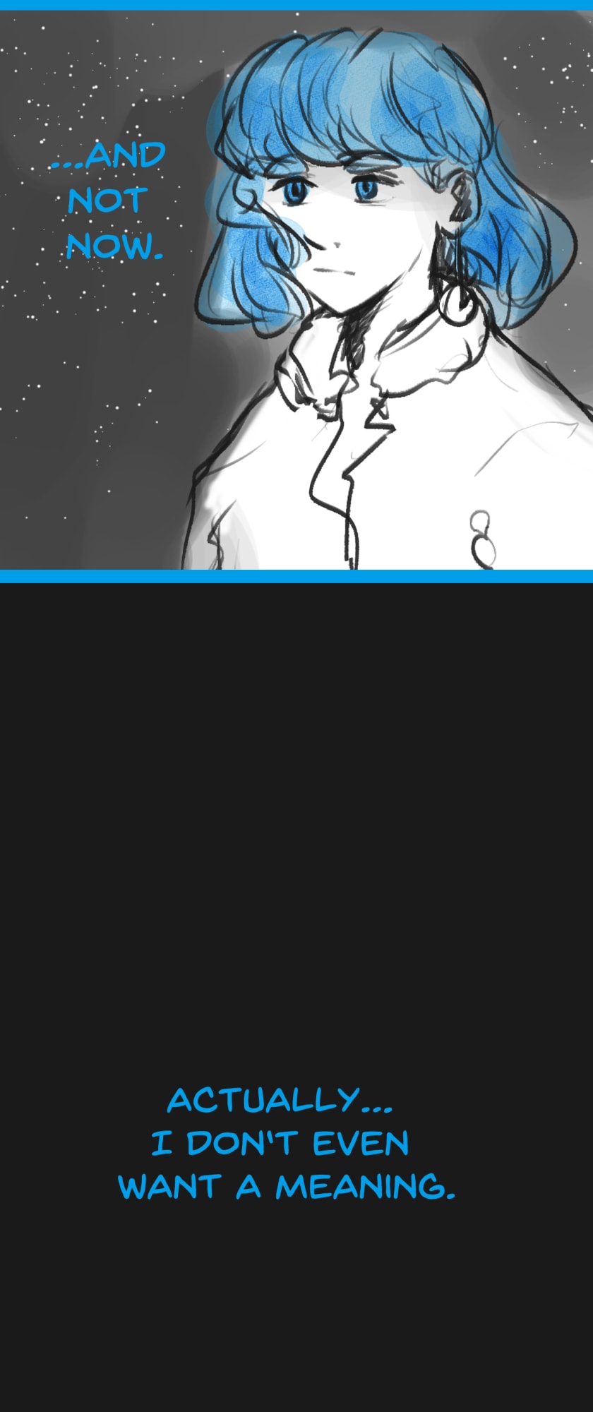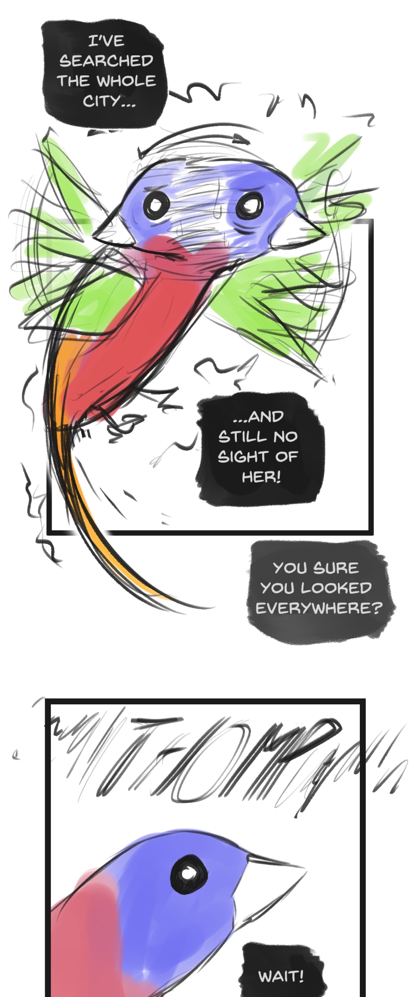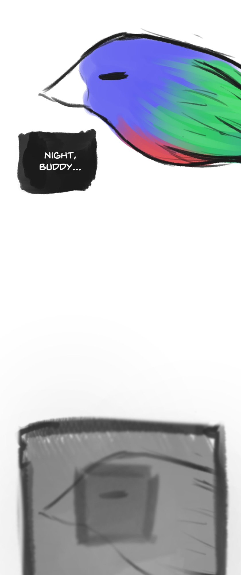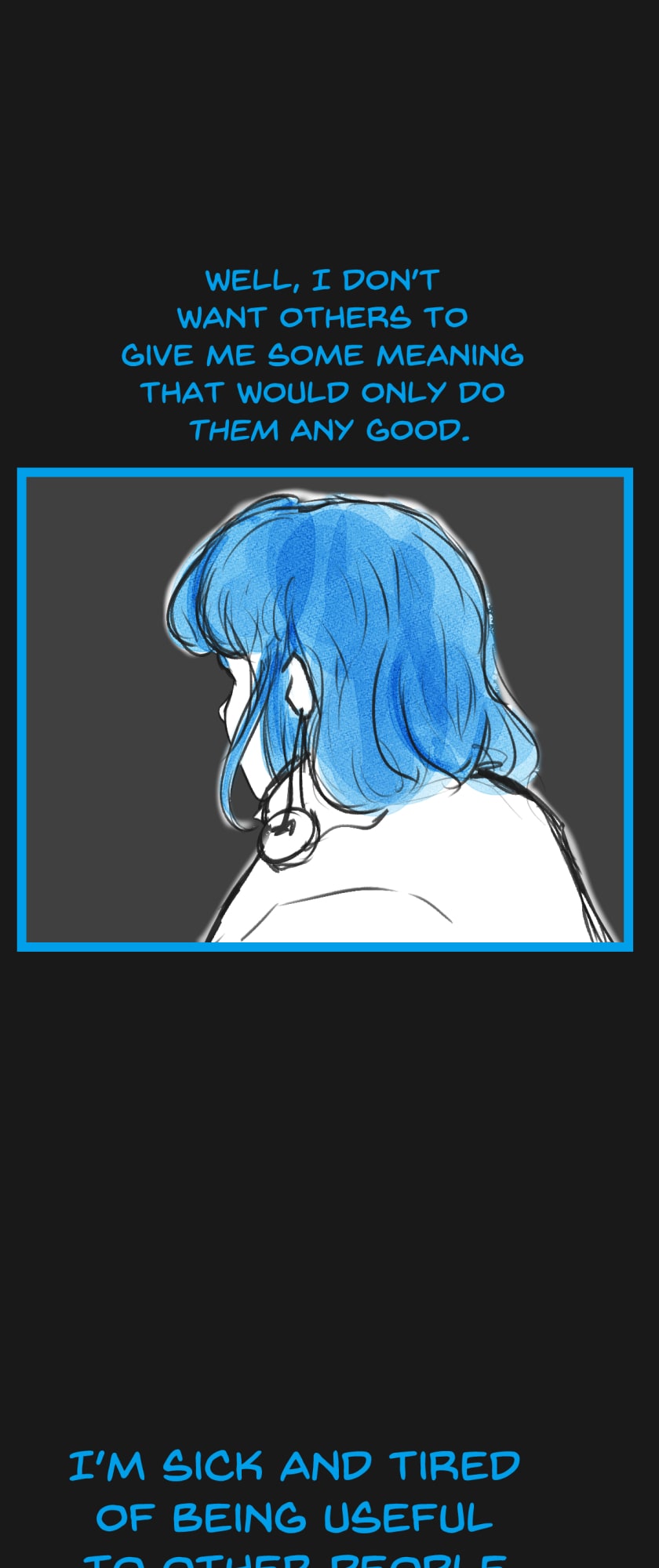 In a state of hopelessness and despair, a blue-haired girl, who was put into involuntary sex work, wants to escape the place she's stuck in. She feels imprisoned, and wishes to be freed. Then, one day, a little bird with the ability to open "frames" - portals from one place to another - fulfils her wish.