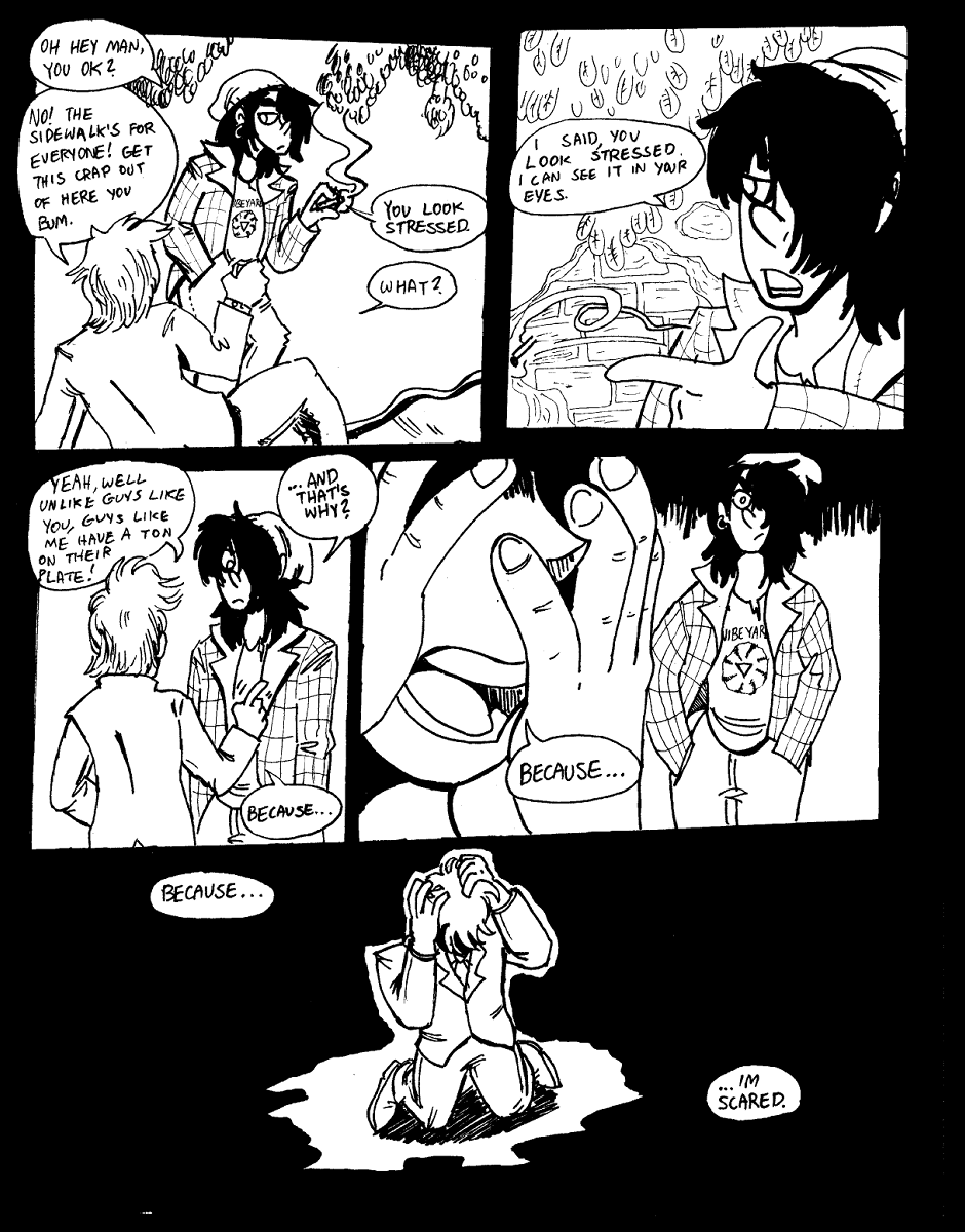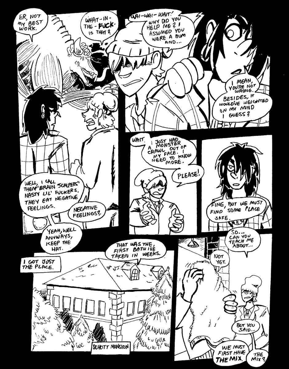 So you think you know shit? you don't anything. it's 2004 in san fernand probably the best time to be alive. freezer burns come in cherry and blue raspberry arcades are dwindling but theres still some good ones shag burger just did a tie in with a cool animated sictom and you can still go to shopsto rent movies and games! oh yeah and if you're like me you get your shit kicked in from abominations every week to make a few bucks in this overpriced city. so i grabbed a few friends, a demon chick whos constantly on my case and always eats my leftovers. my best friend since moving to the states and cerified genius, and this kid who actually hired me for a job and couldnt pay! can you believe that shit? anyway. i solve crimes, fight monters and use boot leg potions to fight over powered oversized and over exaggerated threats to the city and maybe if i make enough noise i can find the guy who killed my brother. it's gonna be a long haul but what do you say? you in?
