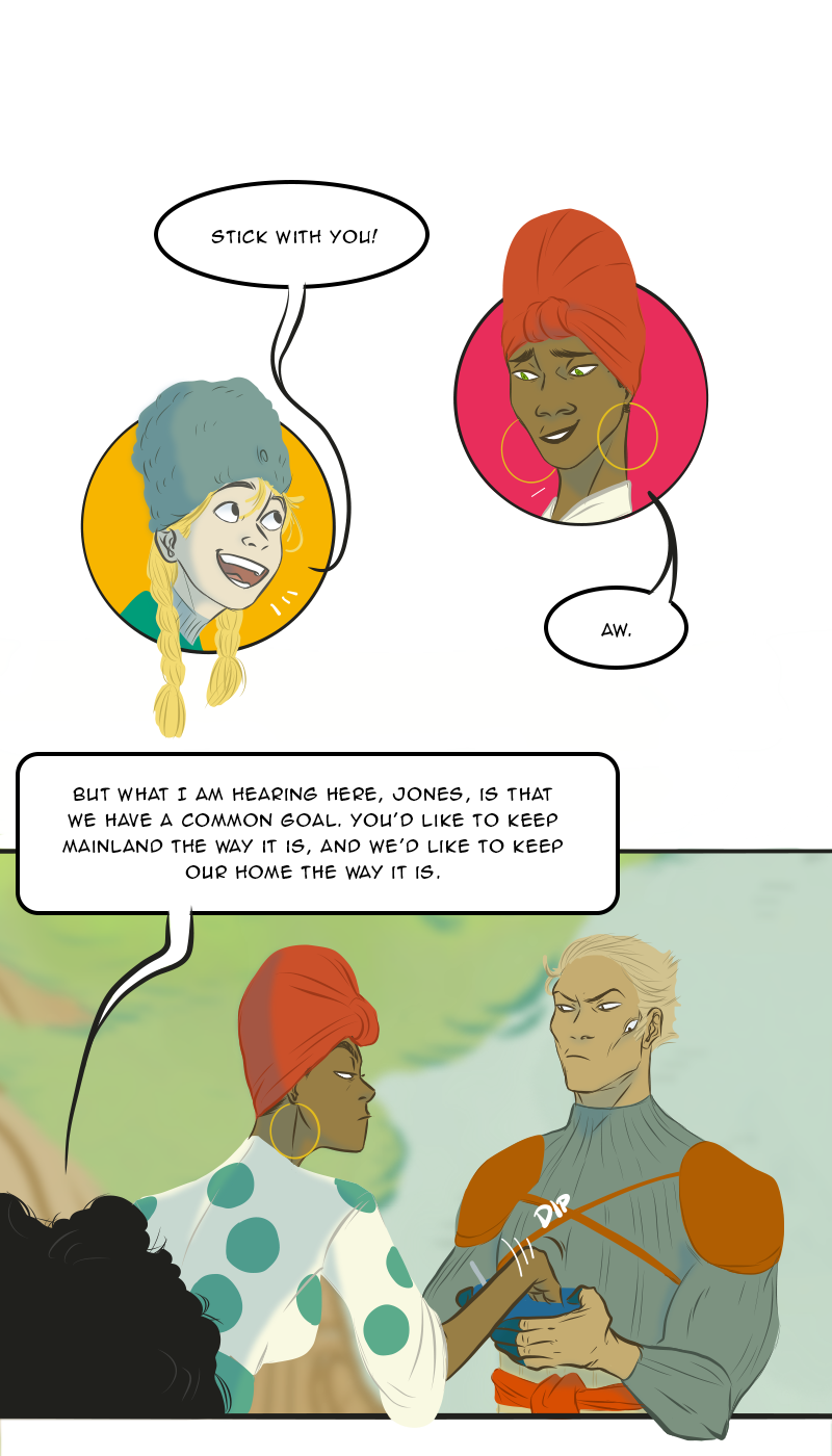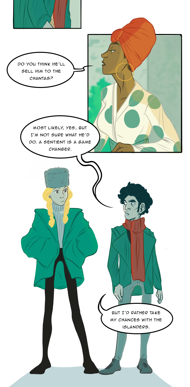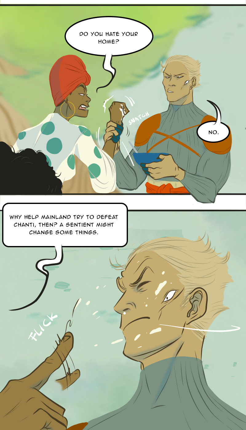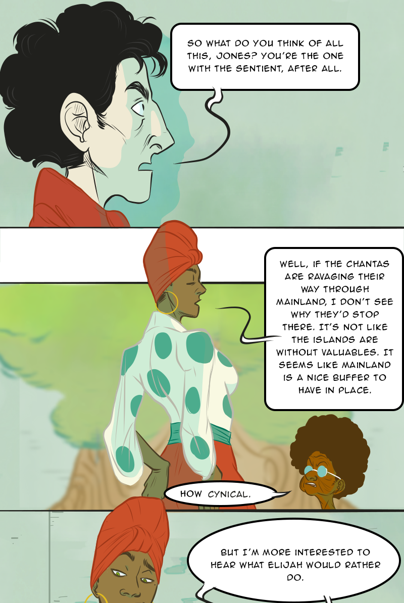 A quarter-life crisis leaves Geraldine stranded in war-torn Mainland with a mysterious stranger. Crossing paths with a Chanta, the growing group of adventurers become unwilling participants in an epic political power struggle. At the heart of it all, the Sentient: Ancient scientific wonder, rumored weapon and walking fortune.