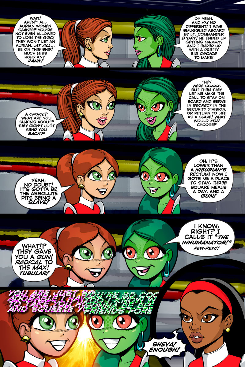 Just a side note, we're taking a 2 week break for the holidays, so no updates over Christmas and New Years. But join us again in 2016 for more fun adventures! Thanks for supporting The Red Skirts, and independent comics!