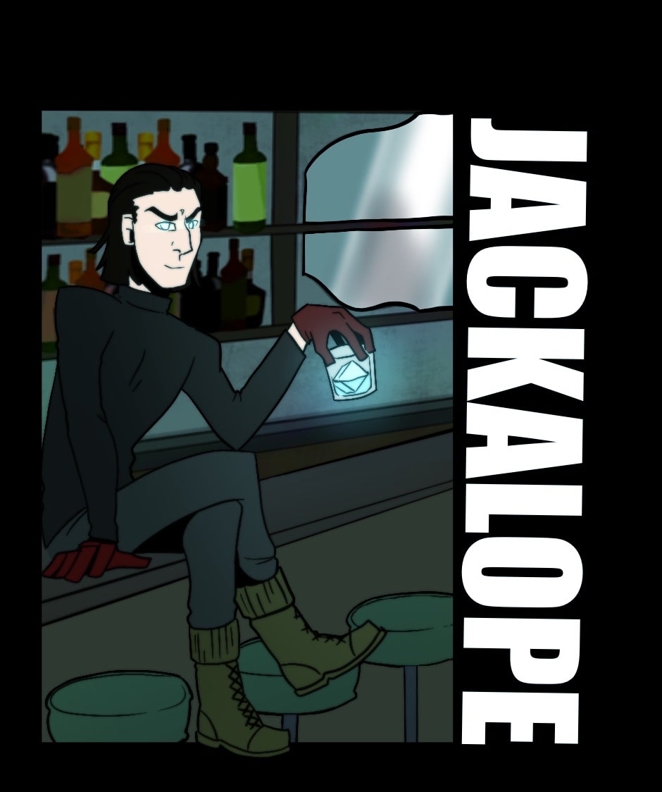 The Rift is just beyond the reaches of the ever-expanding universe. There is no time, but the ruins of the past and the future litter its shores. Finn is from the living, called to the rift with one goal- use a deity's name to get back to the land of the living. Finn must fight and bluff through ghosts and ghouls to prove he is the deity of the Rift, he is The Jackalope.