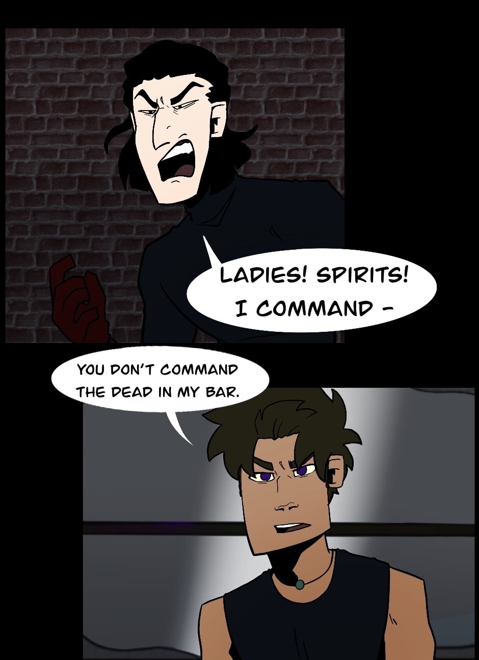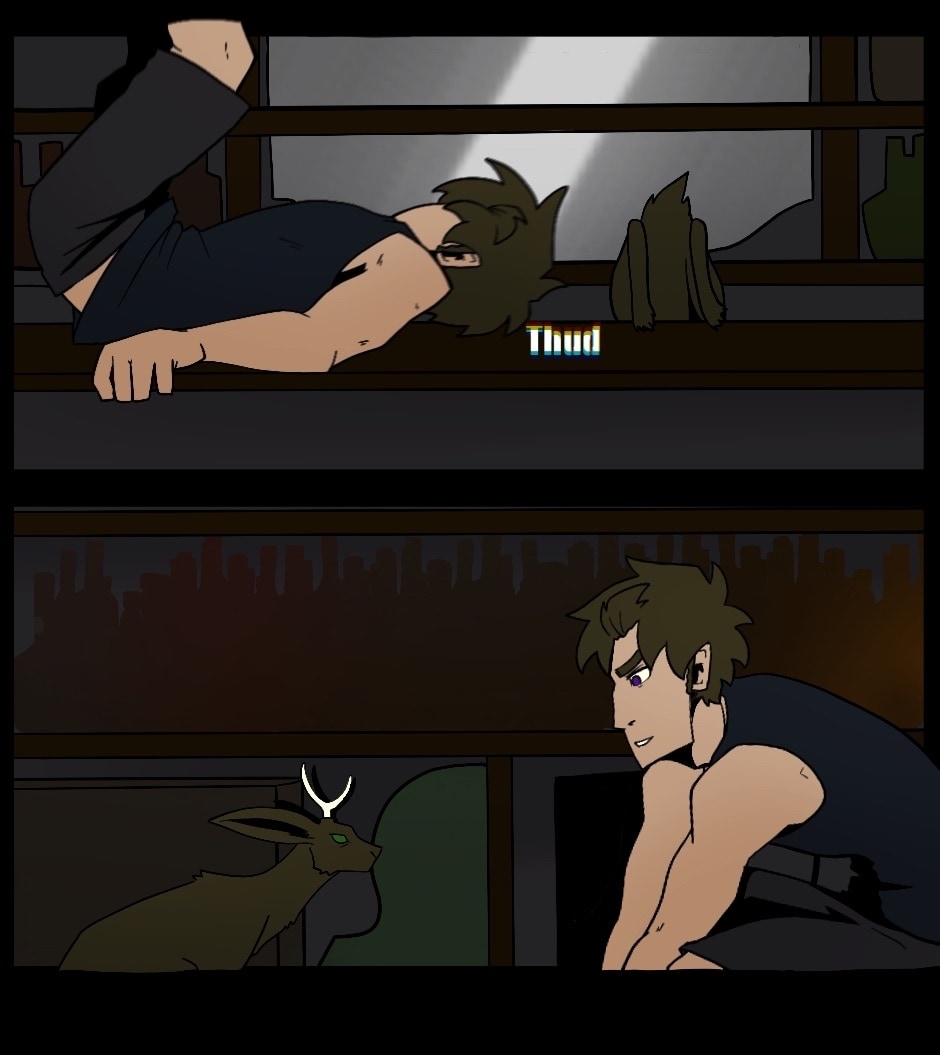 The Rift is just beyond the reaches of the ever-expanding universe. There is no time, but the ruins of the past and the future litter its shores. Finn is from the living, called to the rift with one goal- use a deity's name to get back to the land of the living. Finn must fight and bluff through ghosts and ghouls to prove he is the deity of the Rift, he is The Jackalope.