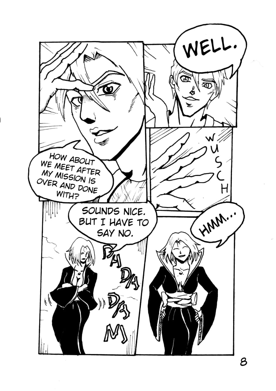 Takeo tried to buy a bit Time for Hoshiko in an unusual Way. But it went that Good and the first Strikes where exchanged.
