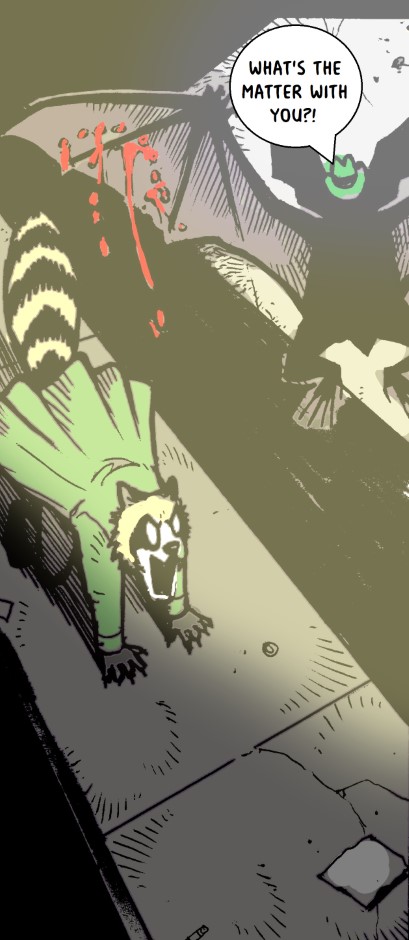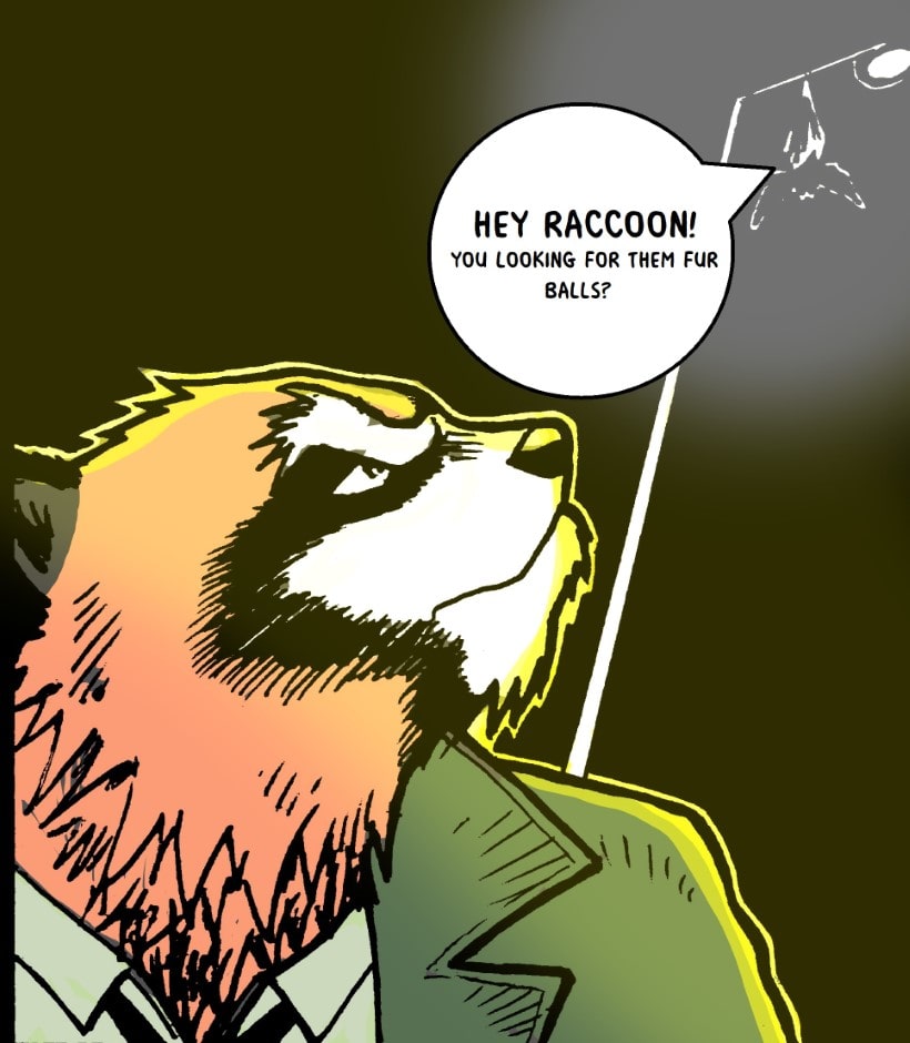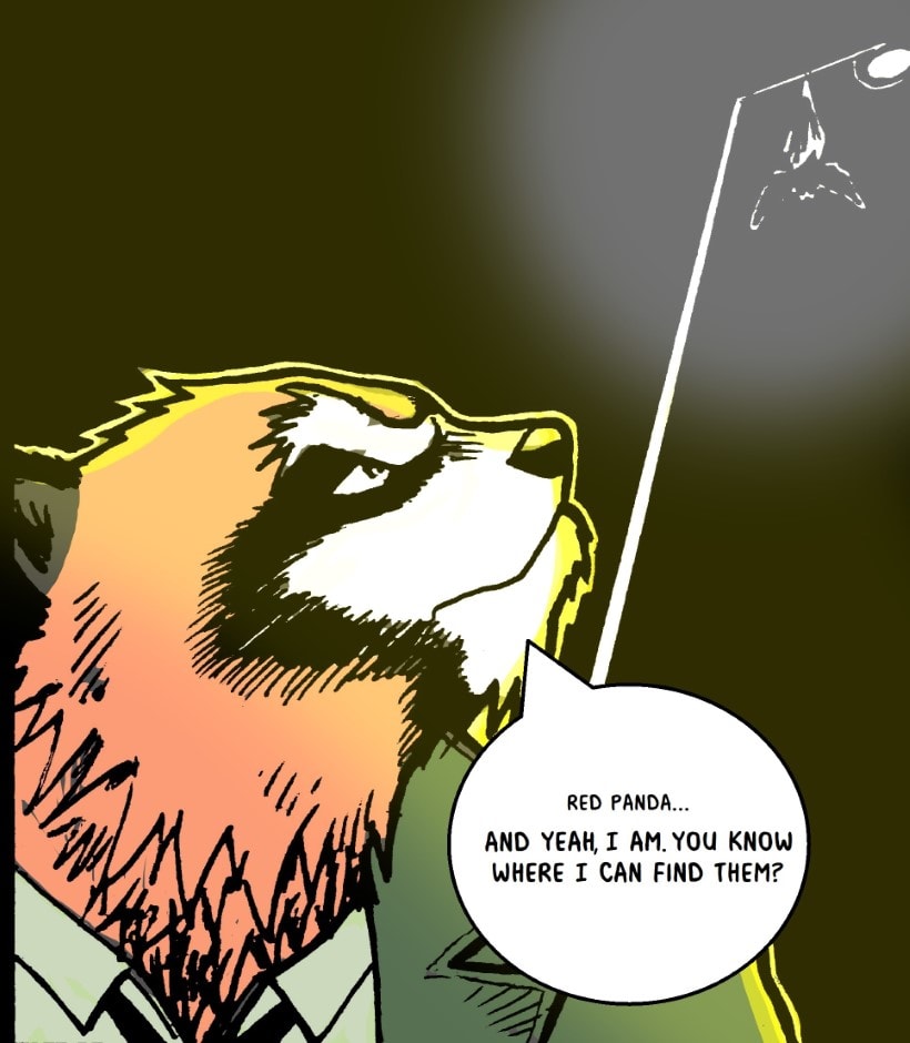 Don’t eat meat is a story that asks the missing question to the usual animal-style plots, what do they eat? In this world, we follow detective Aka Kuma, a red panda who doesn't eat meat as he strikes out of luck on the hunt for a serial killer who is leaving a trail of half-eaten bodies all over the city.