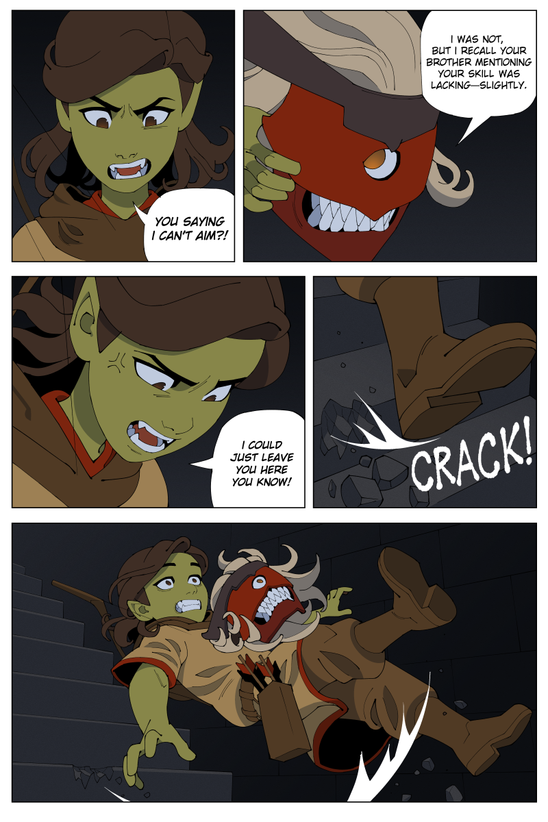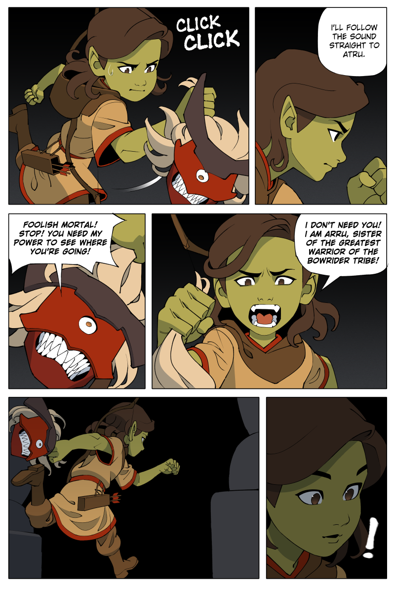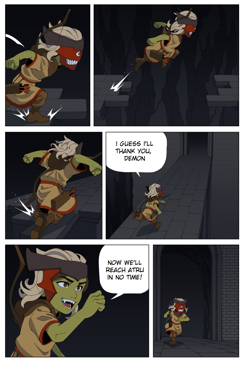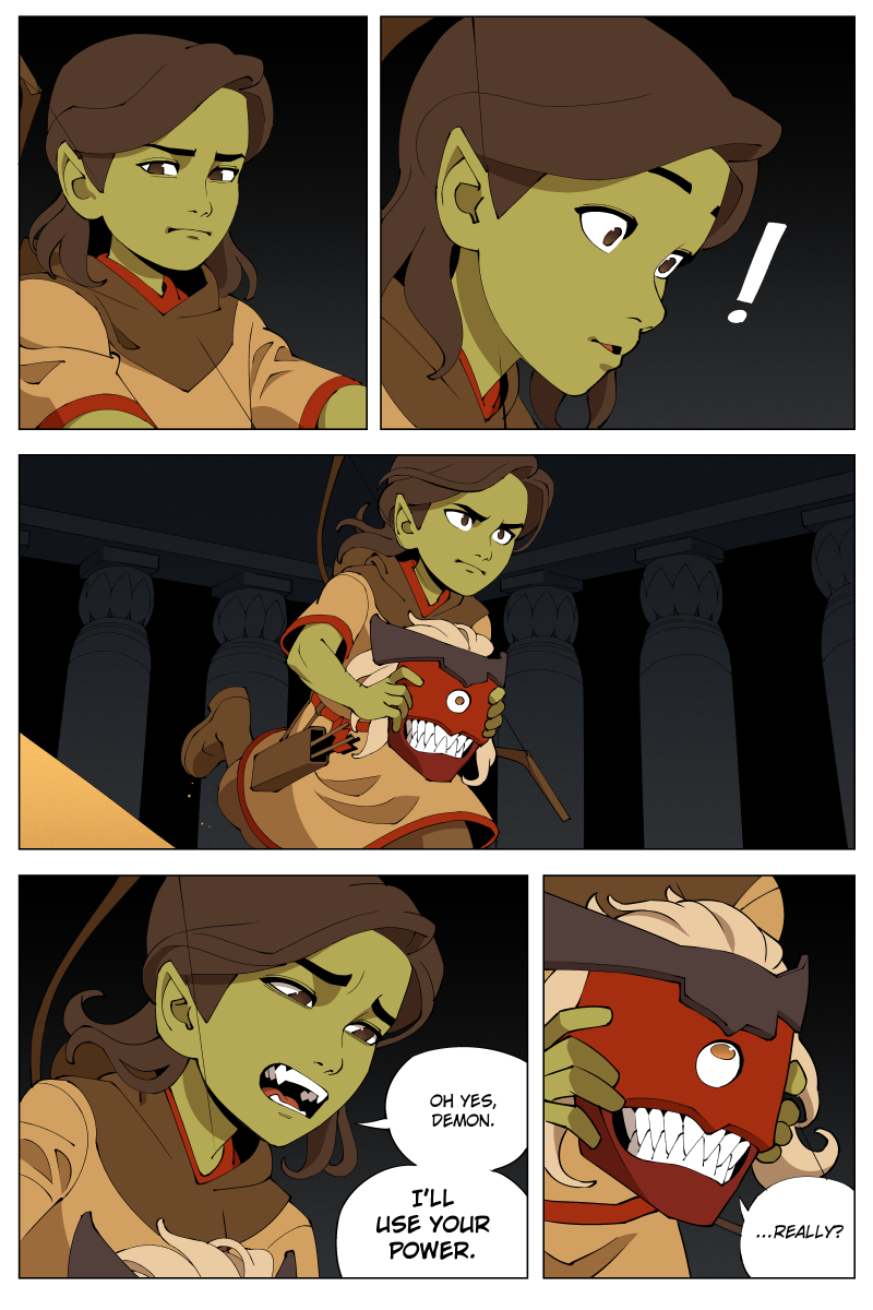 Arru is a young goblin girl from a tribe of nomads who are unrivaled in their archery. She embarks on a journey to become a renowned warrior with the help of a magical mask. However, she is unsure whether he seeks to help her--or to use her for his own ends. Along her journey, she and the mask will face ancient monsters, duel rival warriors, and acquire forbidden powers.