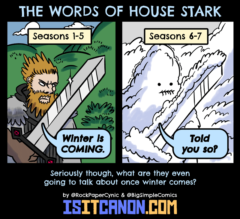 ALL SERIES we've been hearing about how WINTER IS COMING! WINTER IS COMING! Well what the heck will House Stark use as their official words when winter finally comes?