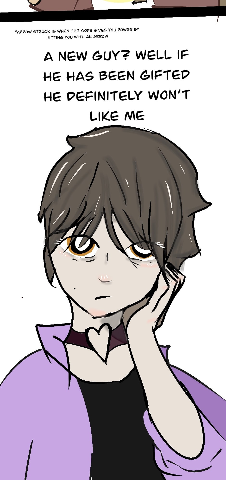 Kyle struggles with himself because he has always been seen as a monster. In this world called arrows people are given powers by being hit by an arrow from a god. Not everyone has it but the people that do are often loved except for Kyle he only destroys until he meets a wonderful person named sky. But what kind of secrets does sky hold?