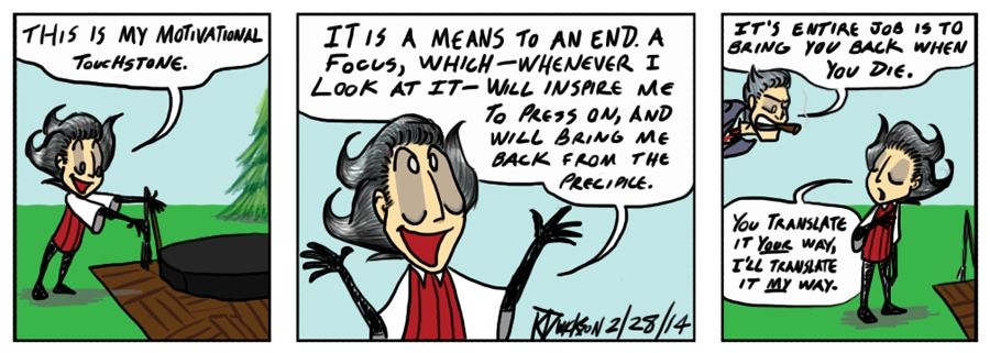 Now this one was actually done for a class at Northcentral University while I was getting my doctorate. The teacher wanted a motivational touchstone, something for me to look at and get myself back on track. I asked if I could do a comic, since "touchstone" immediately reminded me of Don't Starve, and when they said yes I did this piece. I also did a more 'serious' piece just in case, but the joke ended up being on me as they liked this comic more than the serious piece.