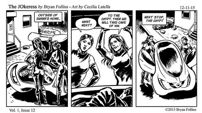 The JOkeress is a weekly, black and white comic strip series, based on The Jokeress indie ebook series by Bryan Follins. The JOkeress comic strip, indie book series, and podcast series,are not related to the Batman character or creation, in any form or fashion. It is based on three scientists working on a project to solve the problems of skin disease, mental illness, and aging. However, the scientists discover they are guiena pigs for a larger scheme. They are changed, inheriting characteristics, some of which they are familiar with, some of which they are not. They embark on new chapters of existence in which they have decide on what to do with themselves. Are they good or are they evil? Do they want to know who is responsible for changing them? They have many many questions to answer, and many problems to solve. The main characters are Louise Vann, Swann Lee, Calista Bouvay, and Simon Lakso. The characters are fictitional. Any resemblances to any living characters are coincidental. The story takes place in two galaxies, on Earth, and on another planet called Alto, located in another galaxy. The genre is science fiction. Some underlying themes are body positivity and the side effects of abuse. The Jokeress is anti-formula. The Jokeress is a state of mind.The Jokeress is also a podcast seriescreated by Bryan Follins. Once again, this a weekly comic strip series, not a comic book series.