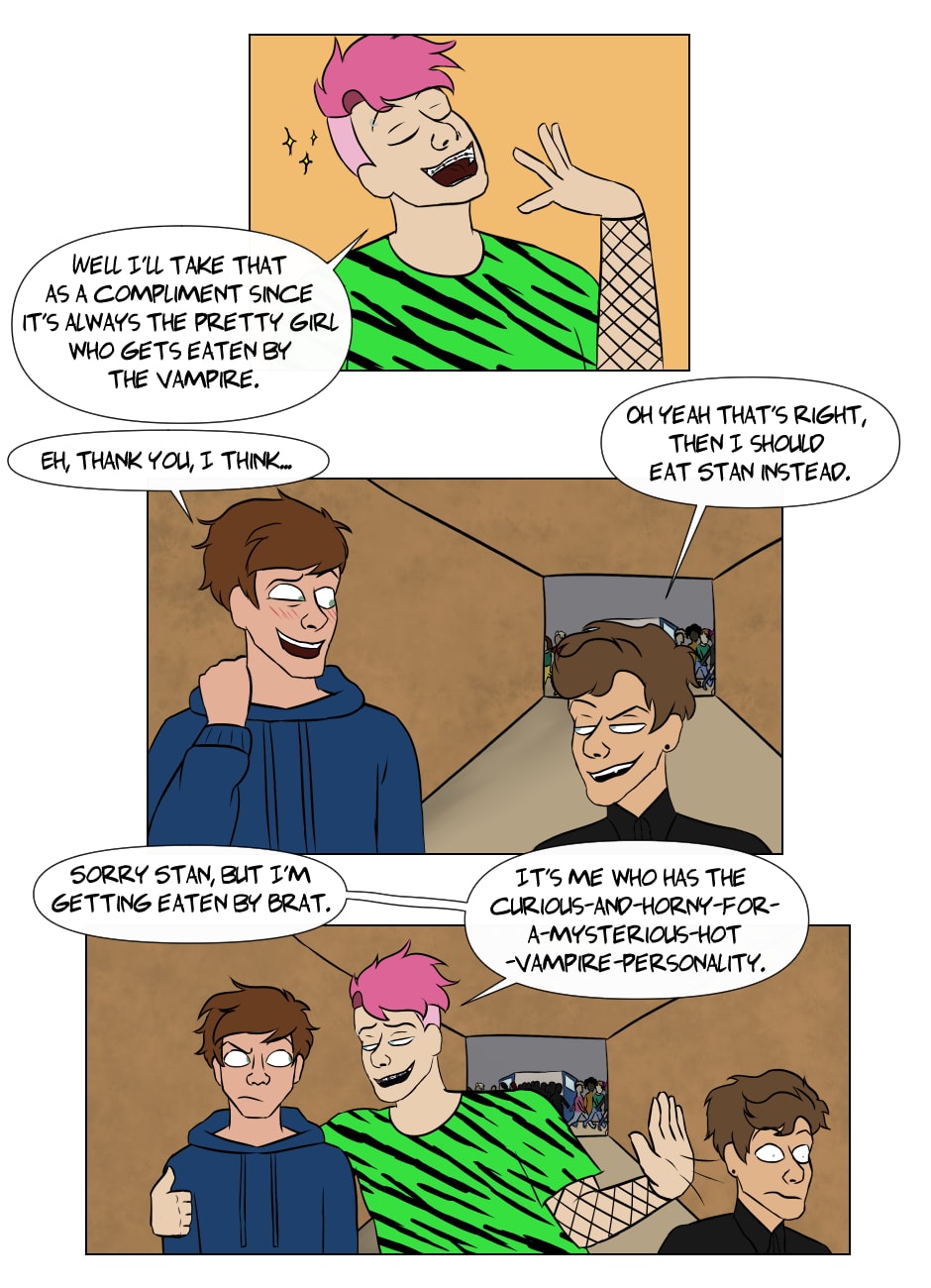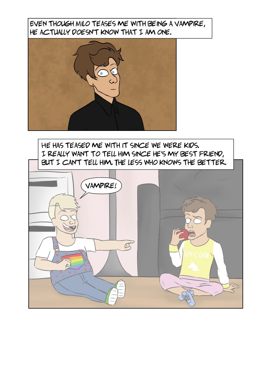 Brandon has had a crush on Stanley for a long time. Now they are roomates in college and Brandon should be happy about that, but he isn't at all. He is a vampire and because of that, he know that he might up end eating his beloved Stanley.