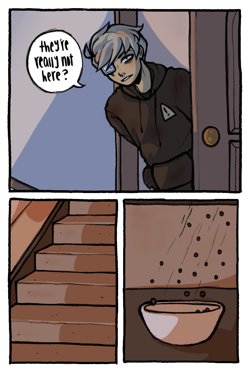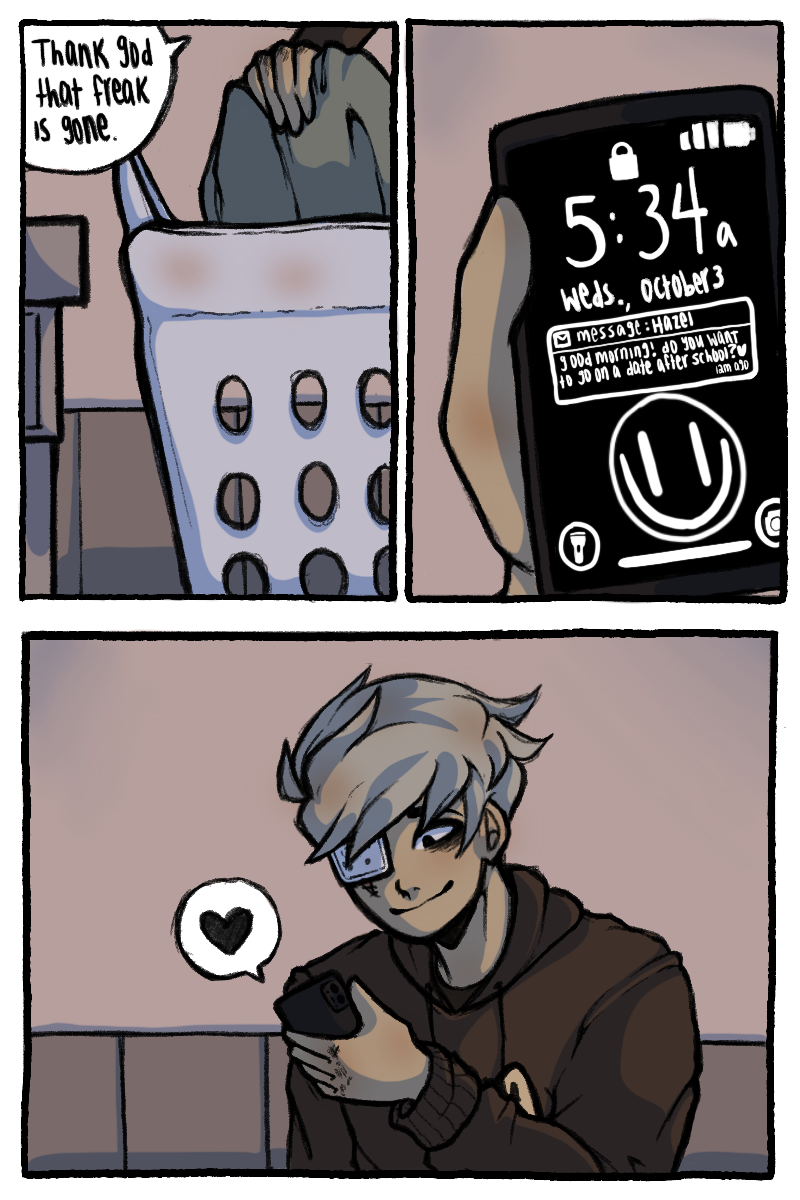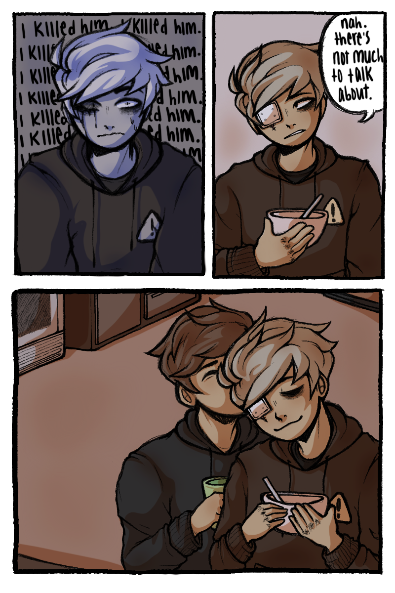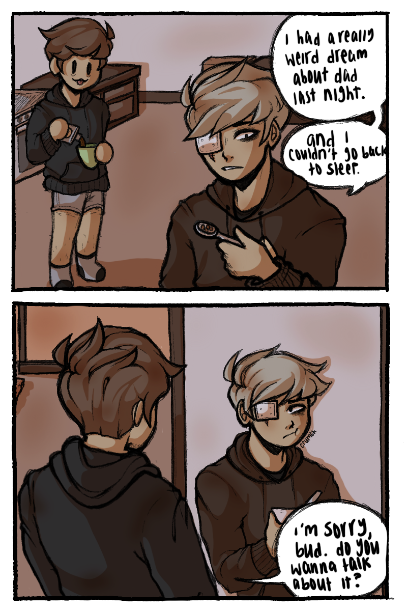 Sawyer was raised by his dads as more of a colleague than a child. With one dad being almost completely absent and his other having a bad grasp on any anger control, Sawyer quickly became a violent problem child. 15 years of acting out and a broken family photo led to the permanent loss of his eye in an accident. Unbeknownst to Sawyer, a god had been keeping an eye on him since his youth. This god offers to help Sawyer get revenge on his dad, but they probably don't only have good intentions.
