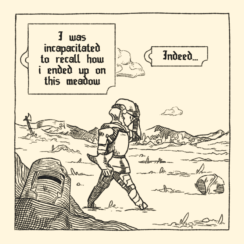 Cabral, an outlandish knight, abruptly awakes overwhelmed by the faraway lands that he now settles. Staggering and intrepid, he sets a fellowship with even more exotic companions through the land, adventuring among bizarre sights, in search for glimpses of past, good o' friends, and astonishing treasures.