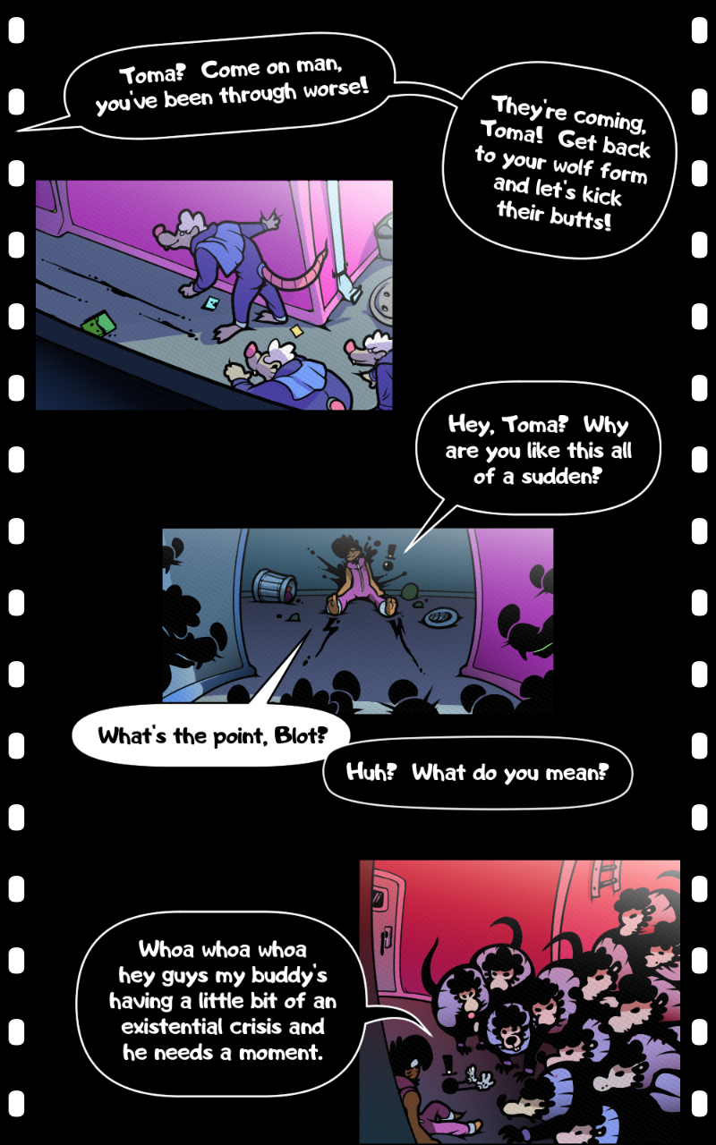 The final bit of dialog on this page is me talking to myself when I was deciding on the tone of this reboot.