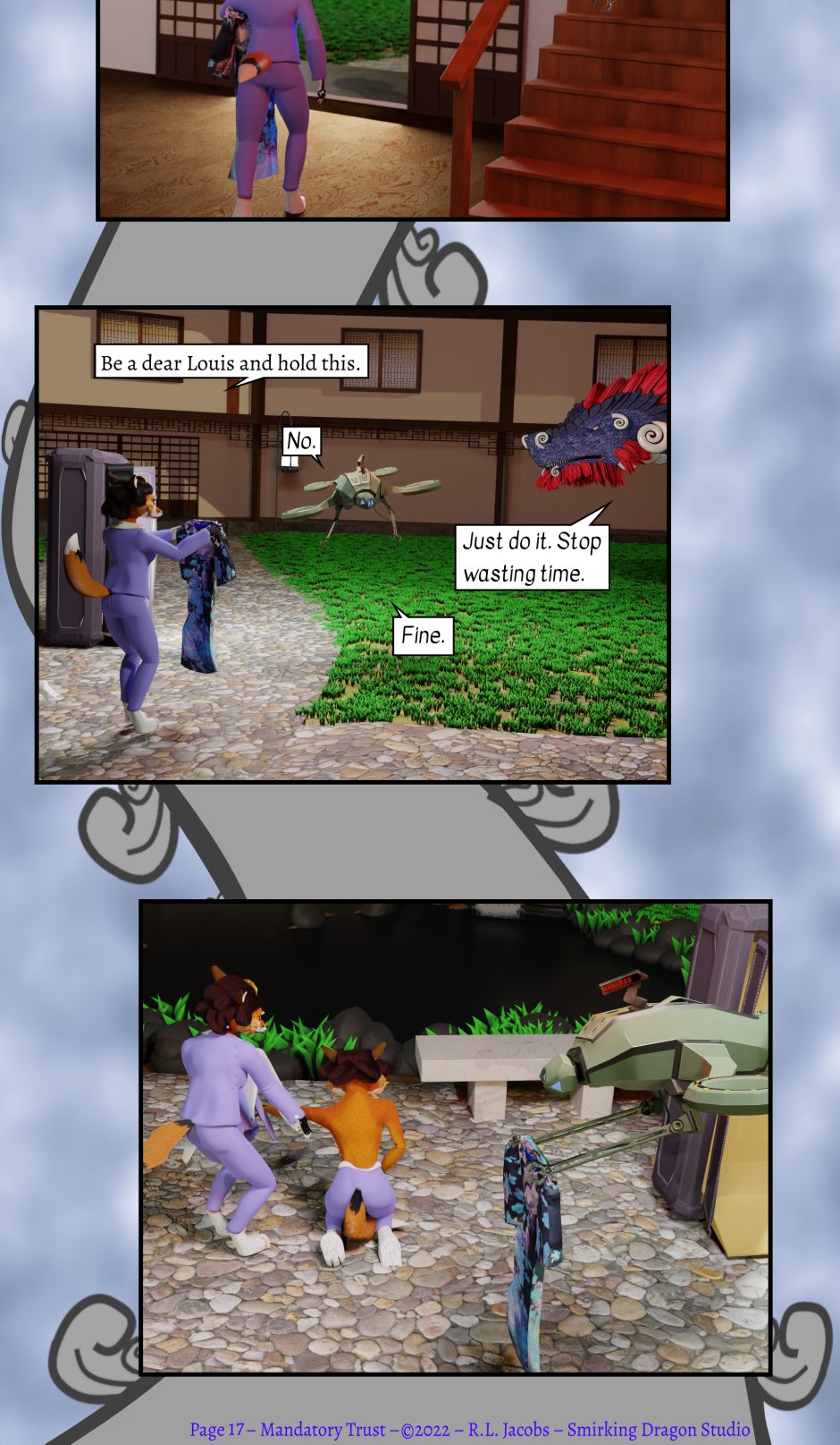 Humanity has spread throughout the solar system with the help of true Artificial Intelligence. Decades ago, the first true A.I. helped invent the reactionless drive called the Virtual Higgs Boson Generators. Since then, true A.I.s have become commonplace embodied in a spectacular variety of robotic shells. This variety is a consequence of the restriction that their shell must be visually distinct from that of a natural human, under which they are granted full legal status as persons.