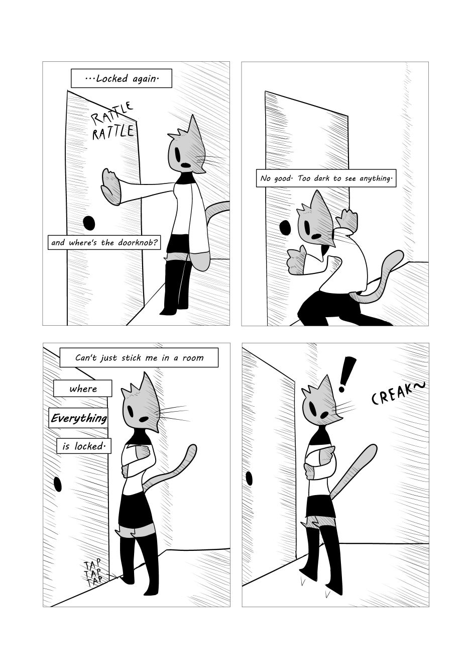 A catlike protagonist wakes up to find themselves asleep, and meets a colorful cast on their journey to waking up; a clown, some talking meat, a dream copy of her younger brother, and a rabbit that claims to be in the same never-ending-dream situation. Along the way, she learns to trust people she should, fear things she should fear, and maybe just enjoy the moment sometimes as she moves from dream to dream.