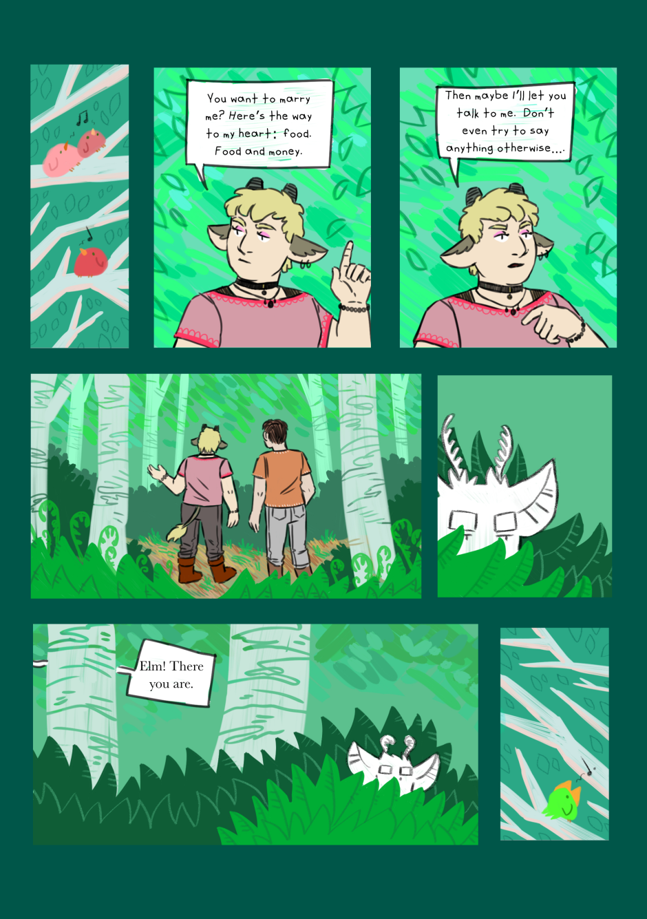 The only thing anyone knows about Elm is that he’s certainly not human. In an opportunity to prove himself to the village elders and learn more about who (or what) he is, Elm agrees to take a request to the fabled Earth Gate, for the Earth Goddess to fulfill. Except Elm has no idea where the Earth Gate is and (despite his protests) he’s got an eager young demigod tagging along. [Updates Thursdays]