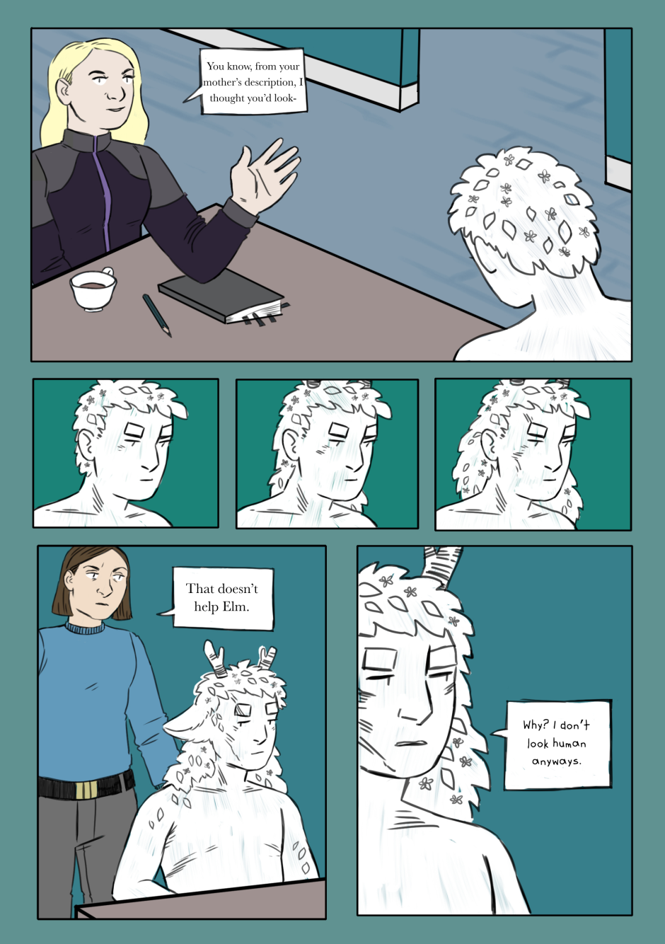 The only thing anyone knows about Elm is that he’s certainly not human. In an opportunity to prove himself to the village elders and learn more about who (or what) he is, Elm agrees to take a request to the fabled Earth Gate, for the Earth Goddess to fulfill. Except Elm has no idea where the Earth Gate is and (despite his protests) he’s got an eager young demigod tagging along. [Updates Thursdays]