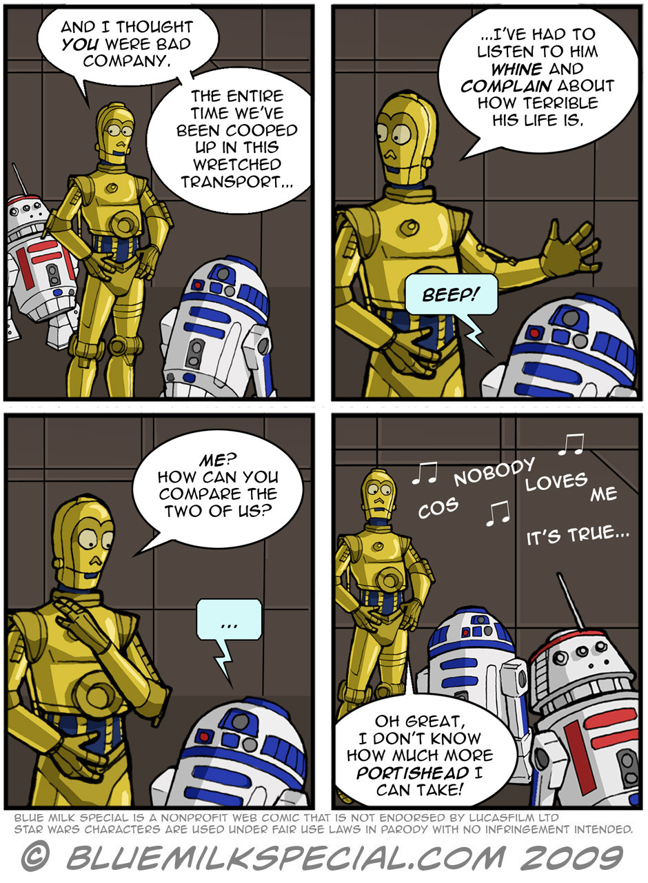 Blue Milk Special is a sci-fi parody webcomic focusing on Star Wars but not limited to it. Other elements from pop culture that appear include Star Trek, Futurama, Doctor Who, Battlestar Galactica. Blue Milk Special produces free pop culture parody webcomics and promotes charity organizations like the 501st Legion and Rebel Legion as well as Stand Up to Cancer. Our goal is to make people laugh as well as to broaden awareness of ways to help people in need. We are non-profit and produce the webcomic under Fair Use law for parody with no infringement.