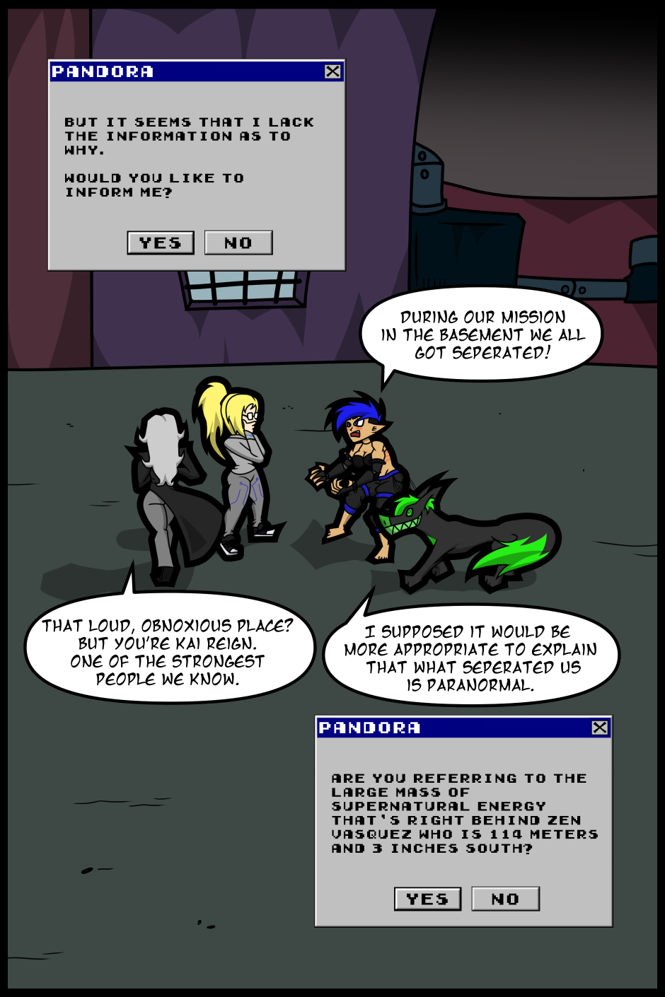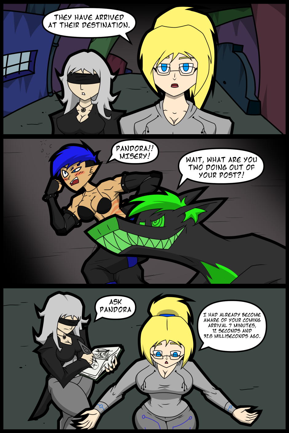 Kai and Hexsap have met up with Pandora and Misery. Pandora is a Techno Cannibal which allows her to create technology. She has the mind of a supercomputer but also the personality of one as well. Kai wants to use Pandora's powers to find Zen and Alice but Zen turns out to be closer than expected. Actually, both of them technically are.