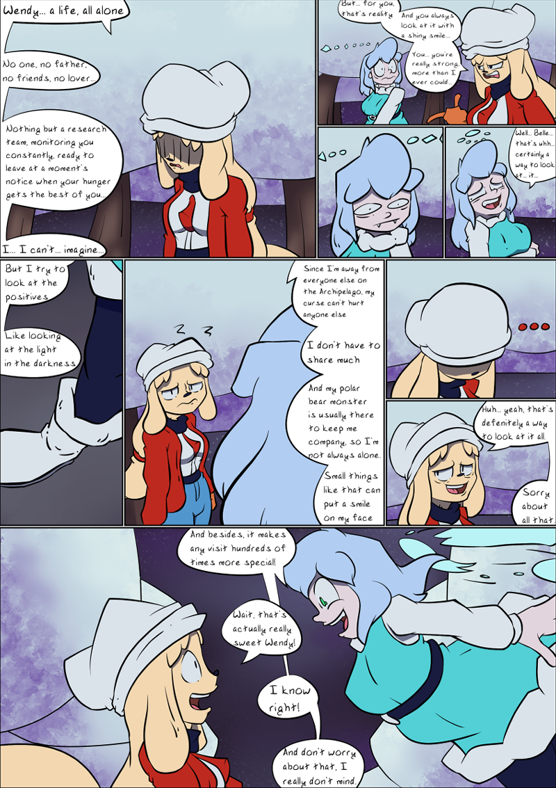 Now follow around as Belladonna and friends just live their lives as monster people, bioengineered from the ground up, enhanced by technology, voodoo rituals, found out of nowhere, or whatever happened with Chelsei over there... living on an Archipelago with a ton of funny little monsters here and there, along with some funny sci-fi and fantasy stuff here and there... but mostly just the characters living life.