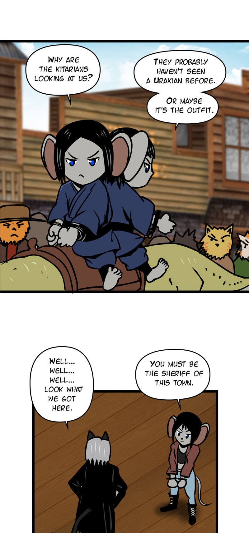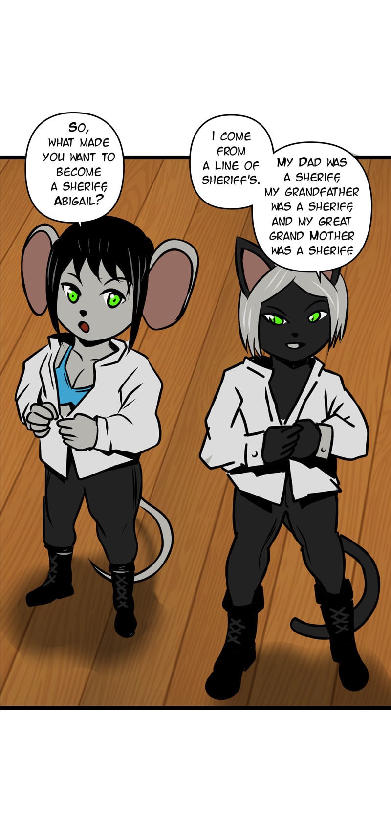 The comic takes place in planet Urak home of the urakians. A species of mouse like aliens who are similar to humans. Black Katana ake Christina Jones is a genetically modified super soldier who works for a secret organisation called shadow Dome. Black Katana is a fun action comic that doesn't take its self too seriously.