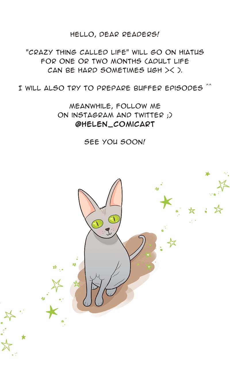 Imagine that you want to live a quiet and boring life... But you can't for the reason that you have a husband and a sphynx cat, whom you love and who sometimes drive you nuts with their antics. How to survive? Draw a comic about it! Join the story to get to know a charming cat, his human parents and stories created all around them.