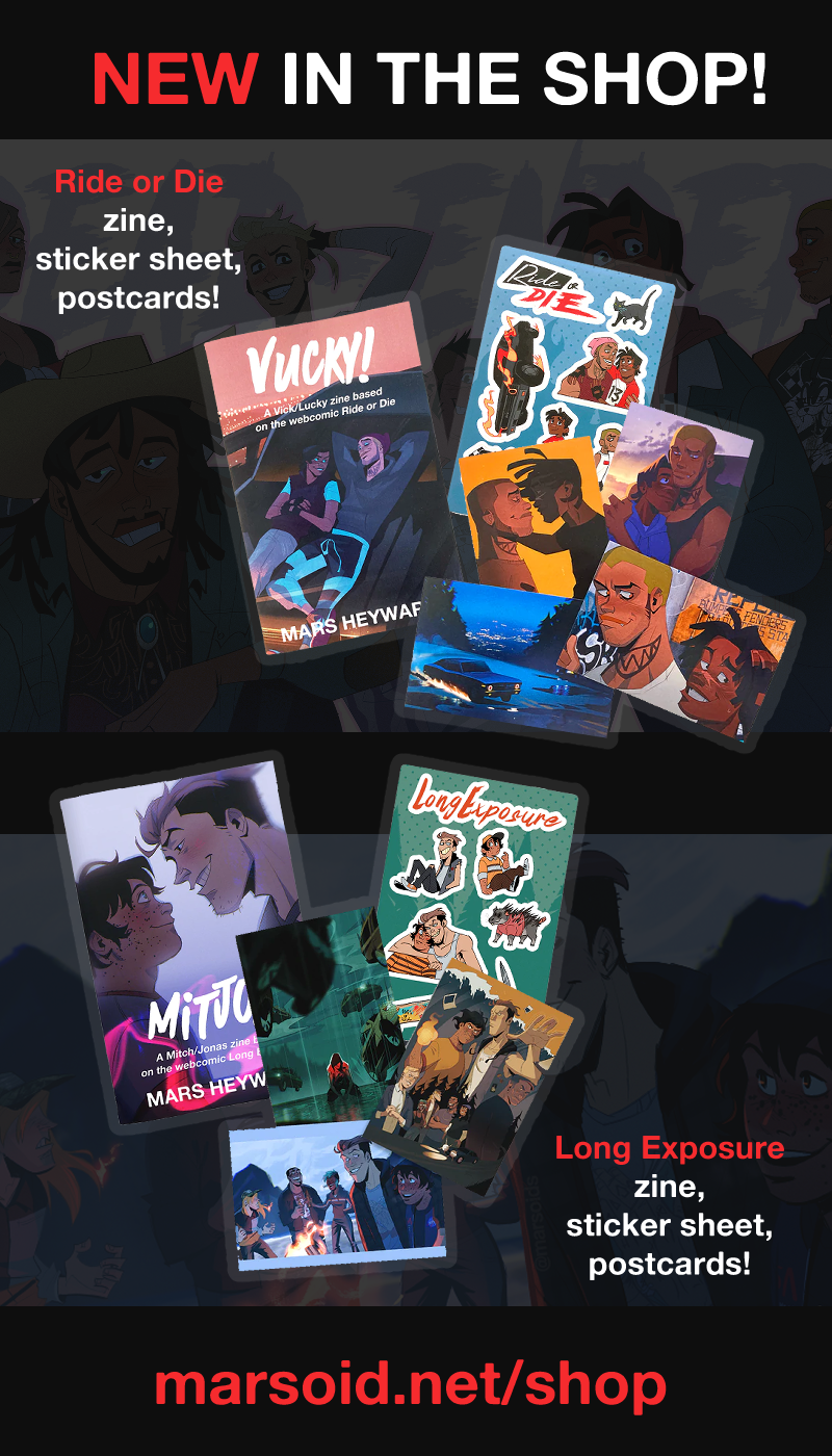 thanks for reading!! and thank you if you're unlocking these pages early through tapas' early access program!! if you want to see even more pages ahead of time, check out my patreon at patreon.com/marsoid!
