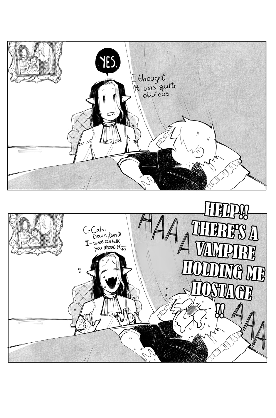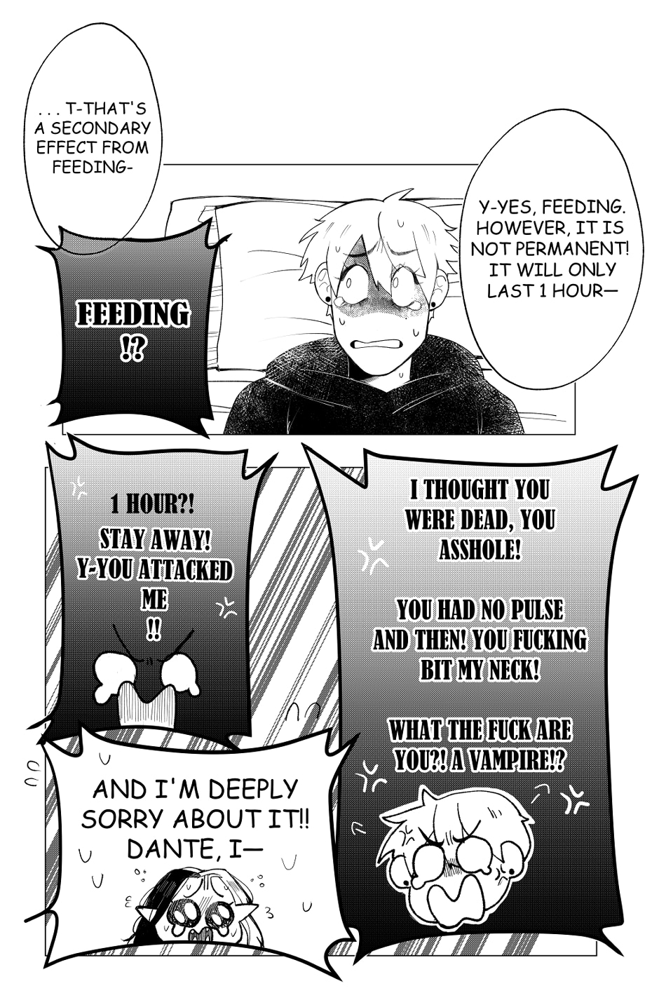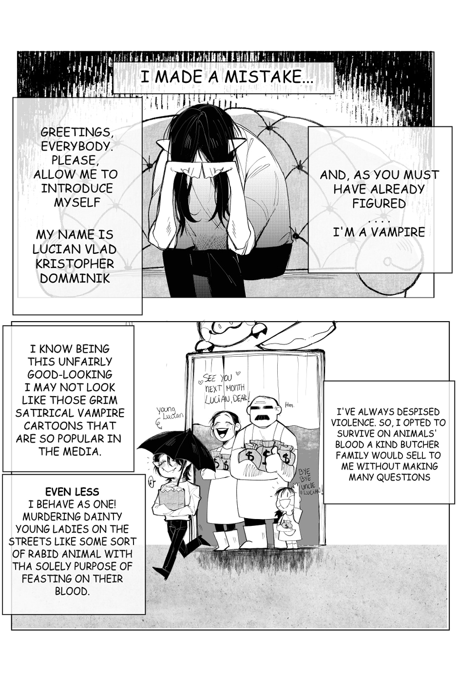 "Dante, a college student working part-time as a children's party planner, wakes up late on the day for one of the most important parties he has to host. On the way, he meets with a curious-looking stranger that may change his life a little. Who's this guy and why does he looks like a vampire?! "