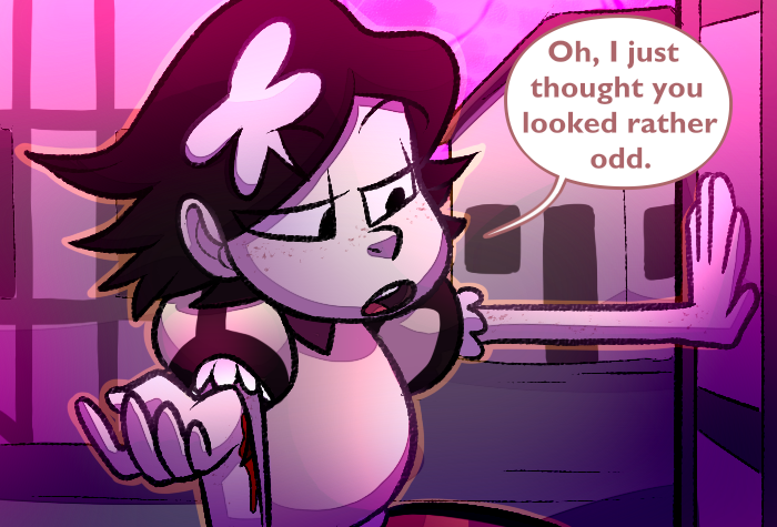When I first concieved of Timezone, this was the first scene I ever envisioned, y'kno? More than anything I was having fun playing the personalities of these two off of each other. Just a little memory I nearly forgot about...