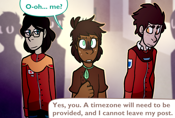 Timezone a light sci-fi, drama and LGBTQ+ friendly webcomic that explores a world similar to our own but with one major difference! There is a large focus on character interaction, pages are occassionally punctuated with animated panels, and some sensitive themes (injuries, swearing and in-fighting) are explored through-out.