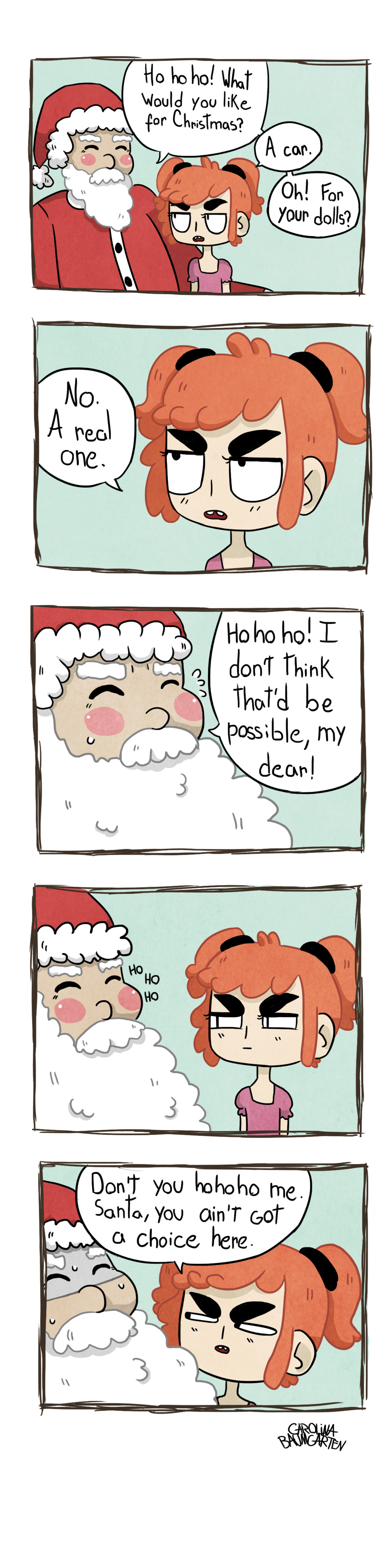 lol,.. such fun seeing little Coffee doing more or less exactly what i expected when i wrote that comment on your wall :P Happy Hoidays Carolina, and thank you for all the wonderful comics