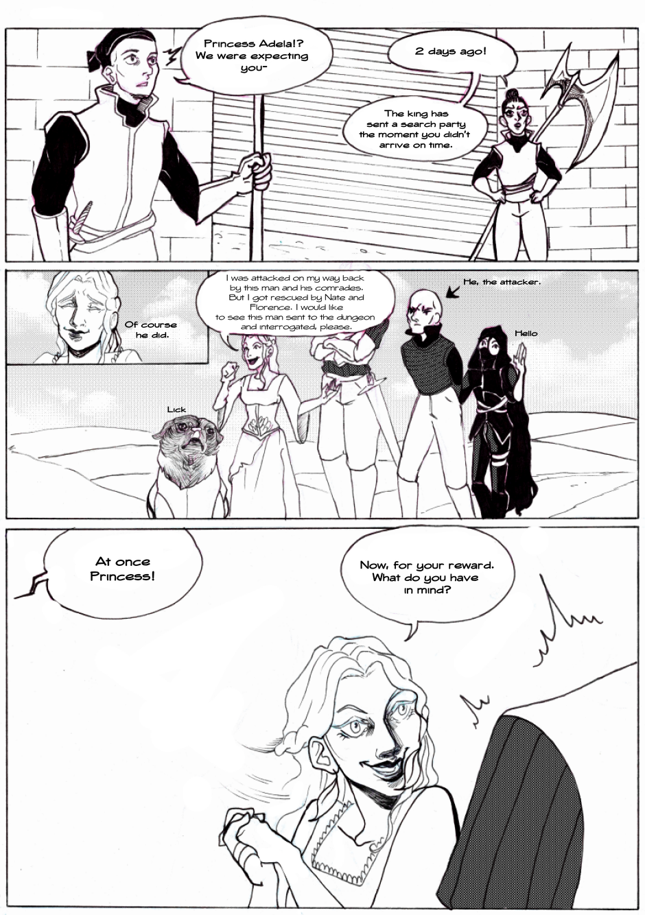 After the creepy encounter with a mysterious elf. Florence, Ami and Nathaniel departed to the town of Midan on some business. However, on their way back to the Almoural, the capital of the 13th kingdom, Nathaniel recognises a familiar person being attacked.