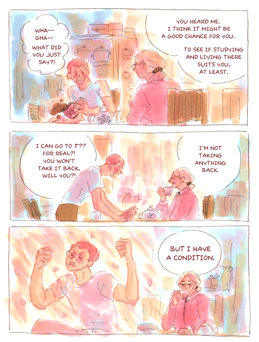 I like the grandmother, she seems too be very observant and all she want him is to be honest with her, curious to find out if there are going to be consequences for lying to her