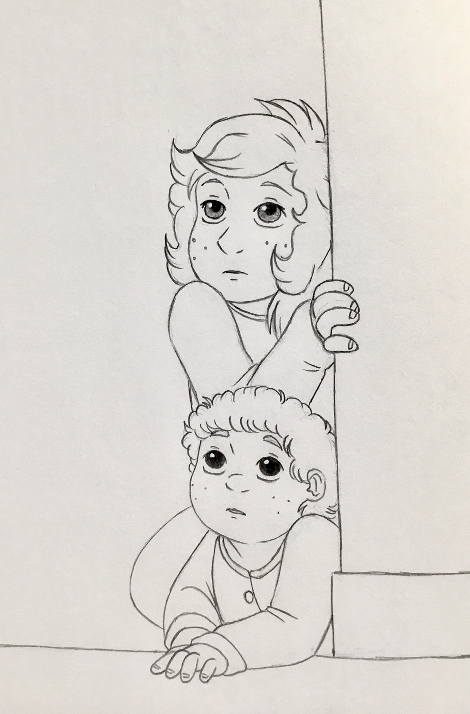 They were supposed to be in bed, but all of the commotion downstairs poked at their curiosity. Little Nora and Steven peeked around the corner at the grownups crowded together in the living room. Mama was back, but she hadn’t come to kiss the two goodnight. Was something wrong?