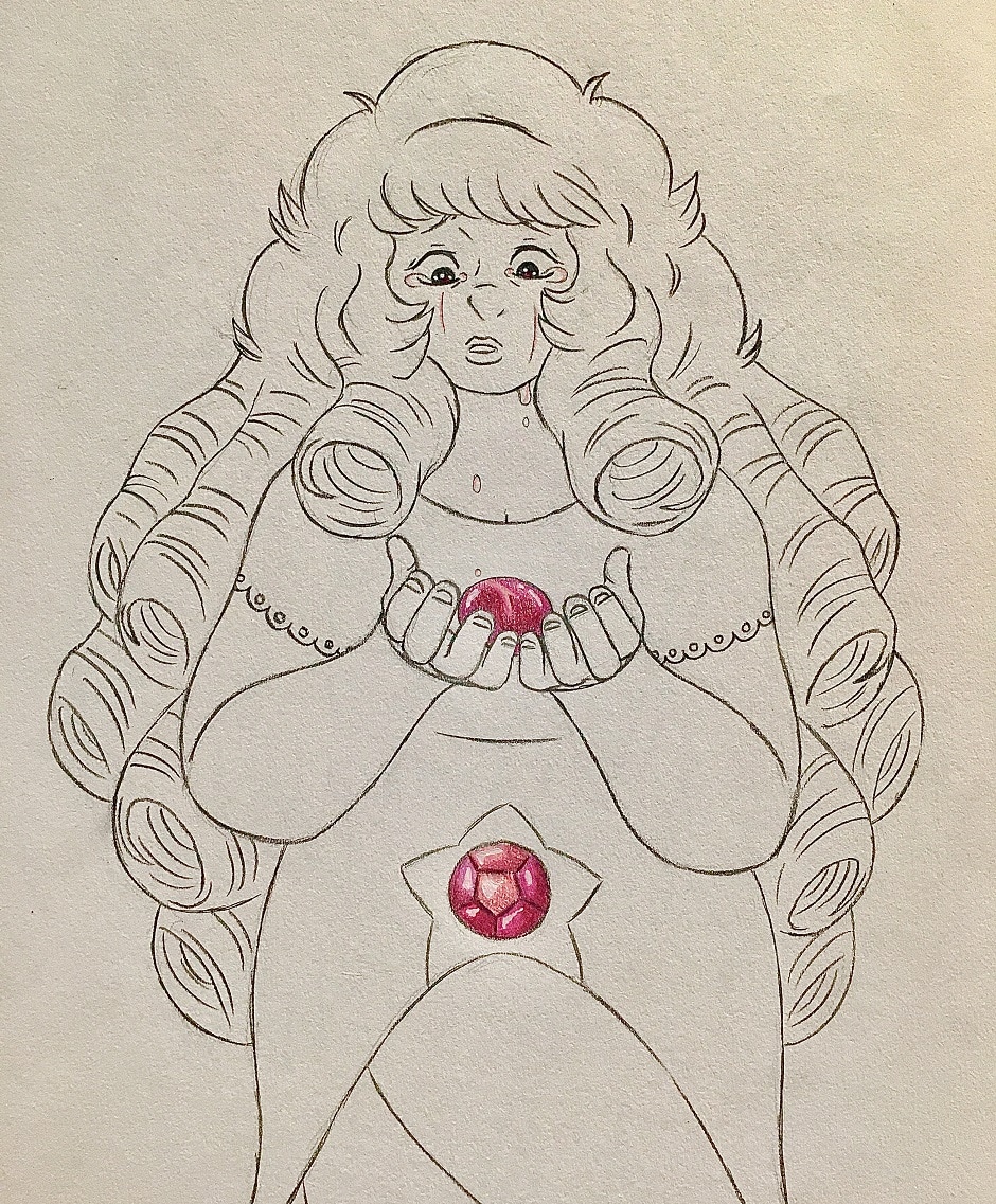 Rose reformed almost immediately after the incident. Excitement to see her third geode, turned to chilling horror when a frantic Greg and Pearl told her what happened. Rose cradled the tiny, cracked geode, tears pouring from eyes and onto the fragile shell. She prayed that the healing properties of her tears would be enough to save her youngest, unborn child.